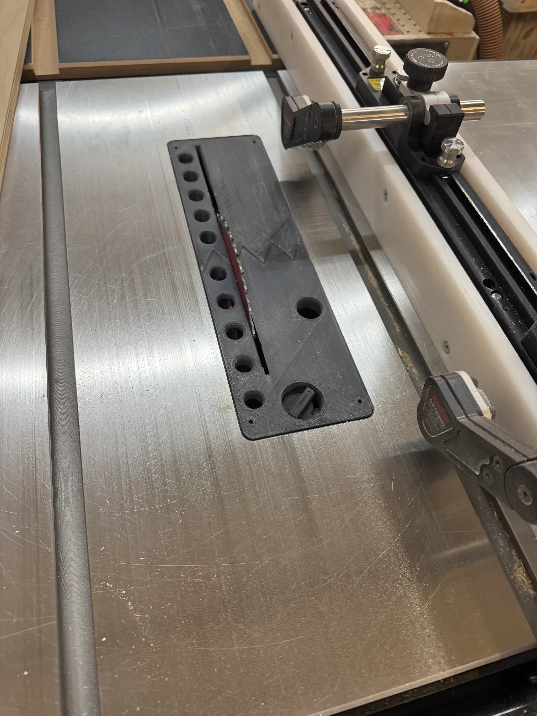Nâng cấp máy cưa bàn Laguna Fusion F1/F2/F3 của bạn với throat plate zero clearance in 3D có thể tùy chỉnh, nay được bổ sung tính năng hút bụi cải tiến.