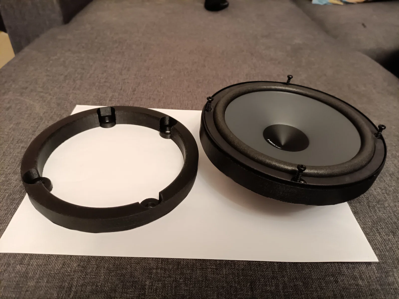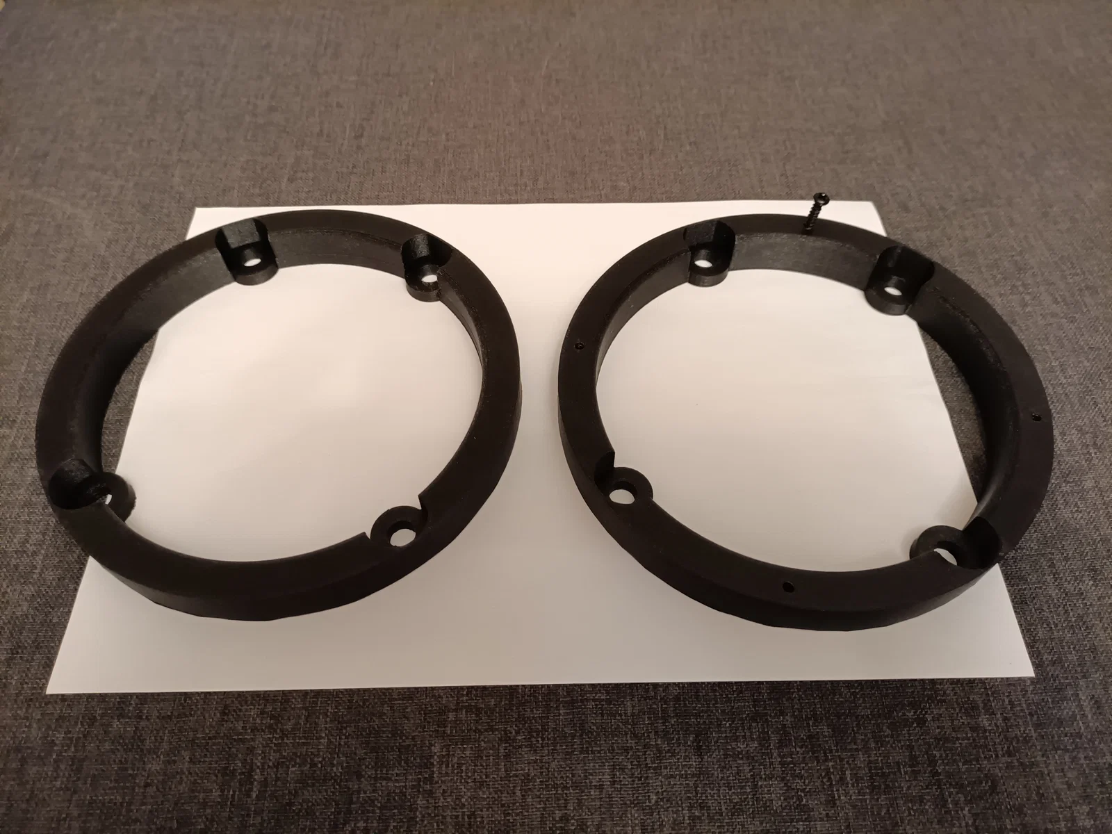 Mình thiết kế các adapter để thay loa zin bằng loa 165mm. Lắp ở phía sau thì vừa khít. Nếu muốn gắn ở cửa trước, bạn phải cắt một phần nhựa quan trọng trên tấm ốp cửa zin. Mình đã upload 2 phiên bản.
