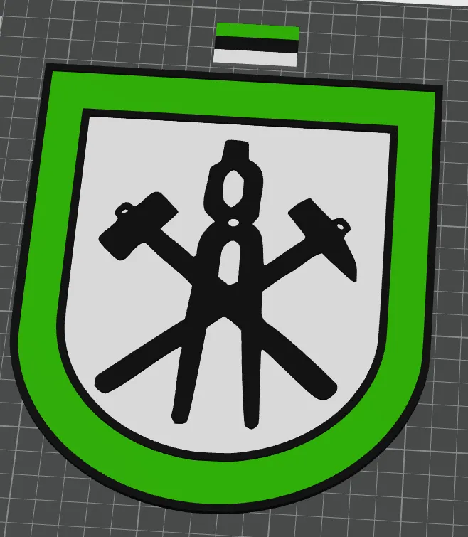 Biểu tượng của cộng đồng: Trong tấm khiên bạc có viền xanh, một cái búa nằm chéo được đặt chéo qua một cái kìm, tất cả đều màu đen. Viền xanh tượng trưng cho vị trí của cộng đồng ở giữa rừng, hai cái búa chéo với cái kìm biểu thị truyền thống công nghiệp và quá khứ về sắt thép.