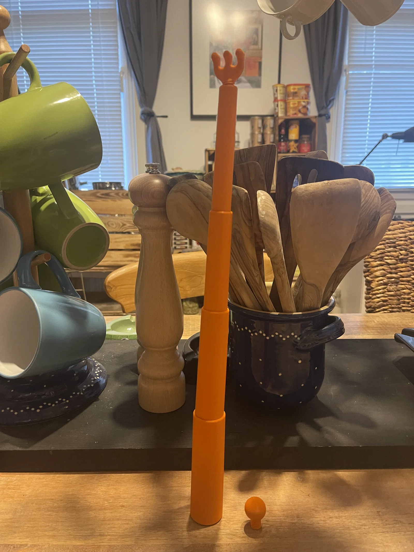 Gậy gãi lưng telescopic Print & Place dạng modular nhỏ gọn, kéo dài được và gấp lại bỏ túi. Thân in one-piece chắc bền, hỗ trợ thay attachments để dùng nhiều mục đích; tương lai có thêm đầu pointer cho thuyết trình.