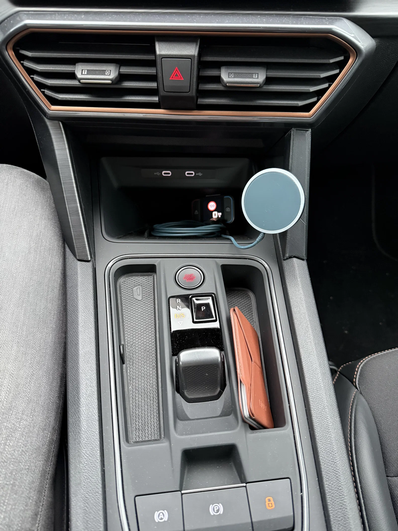 Mình làm món này để gắn gần như liền lạc với nội thất chiếc Cupra Leon của mình. Trước giờ mình tìm hoài không ra loại phone mount nào ổn, mà cũng không muốn dùng loại kẹp vào khe gió.