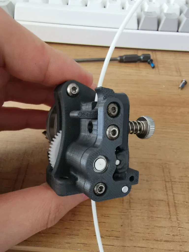 2022\07\09: Lẫy (latch) sẽ bị cong và không kẹp được filament; nên infill 80% hoặc dùng vật liệu cứng hơn.