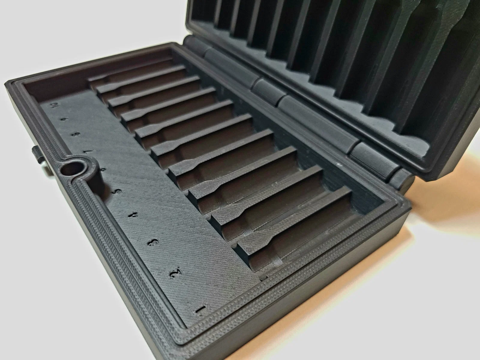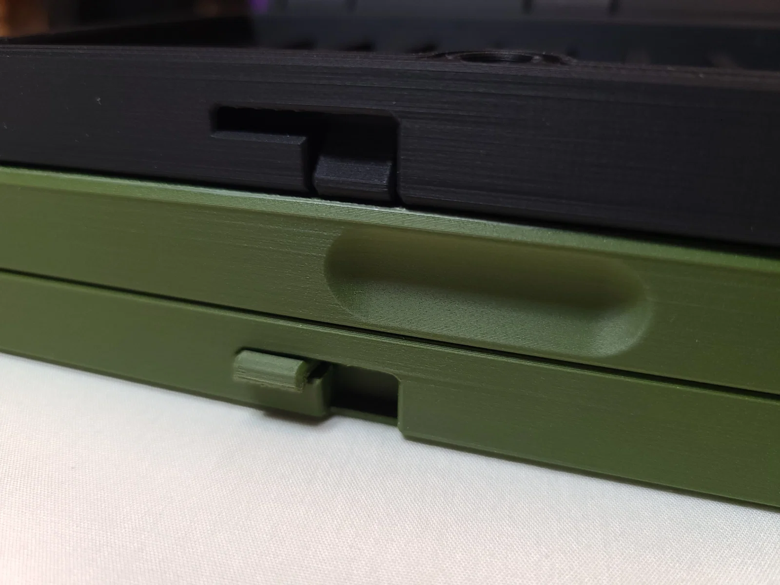 Latching Mechanism: Mình làm chốt theo kiểu “bolt-action”: xoay lên và kéo lùi để mở khóa; đẩy tới và xoay xuống để khóa. Khi khóa, cái tab sẽ nằm phẳng theo biên dạng hộp. (LƯU Ý: Tạm thời nên tránh in ở layer height 0.2 trở lên. Cái pin ban đầu hay bị kẹt/khó “bung” và xoay khi layer dày hơn—xem phần print settings bên dưới.)