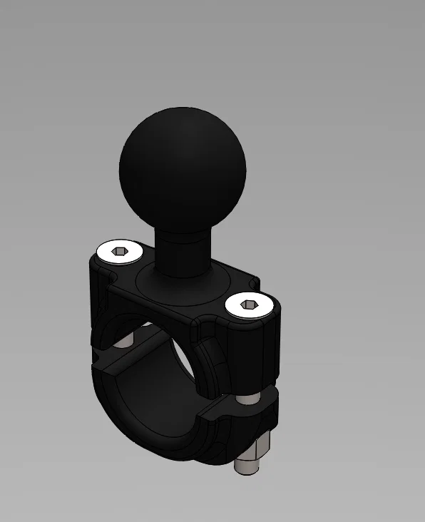 RAM-Mount | handlebar-ball dùng để gắn hệ RAM lên ghi-đông xe đạp 22mm. Khuyến nghị in nằm ngang để lớp in chịu lực uốn tốt hơn, dùng 4–5 walls, 5–6 top/bottom layers, 30% infill; cần 2 đai ốc M5 và 2 vít M5x35.