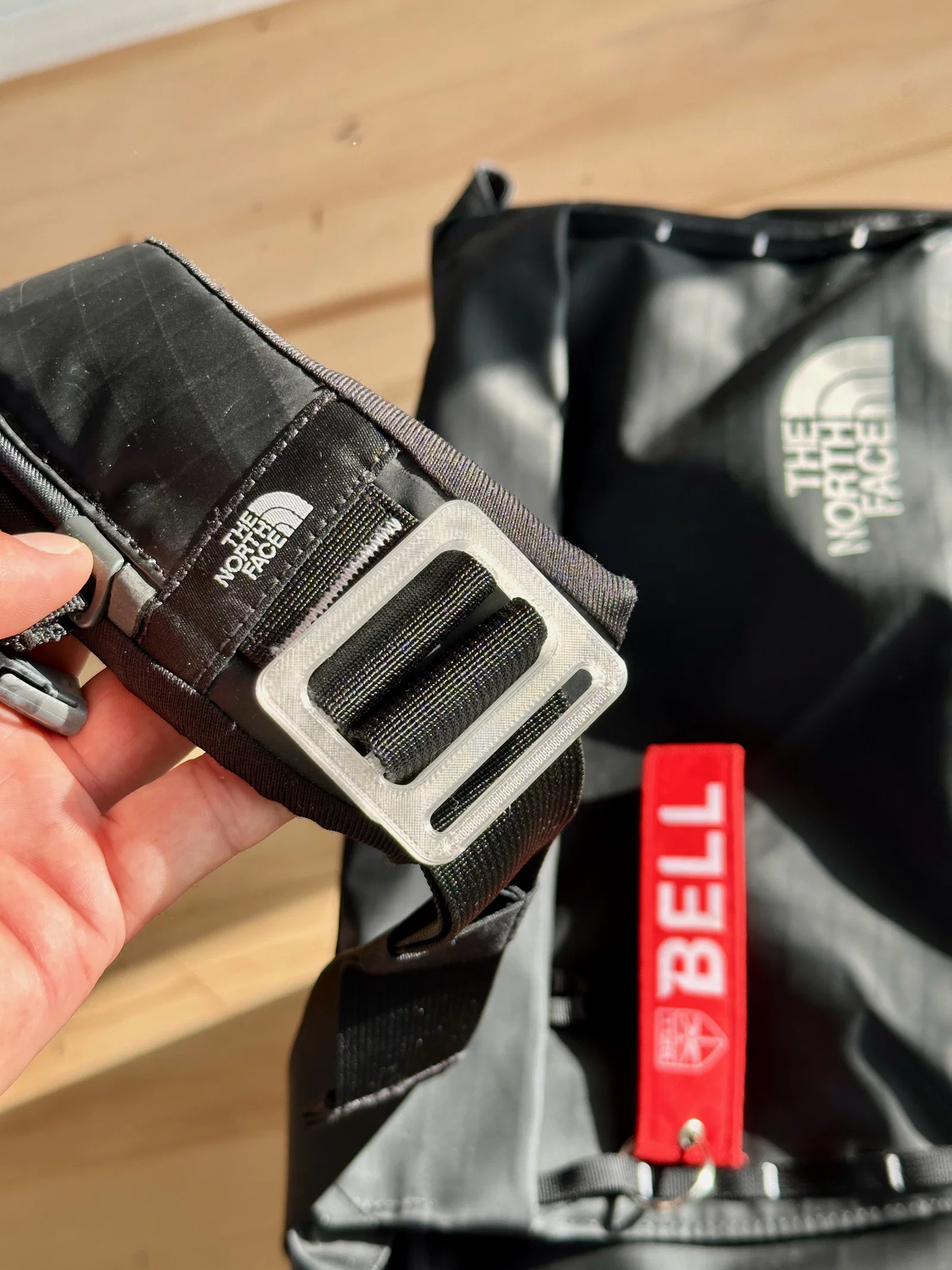 Mình dùng buckle này để thay mấy cái khóa nhìn chán trên túi đeo chéo North Face, vì webbing của túi rộng 38mm. Mình chỉ việc cắt bỏ khóa cũ, rồi luồn phần webbing dạng vòng qua khe là xong. Không cần may hay cắt chỉnh gì thêm.