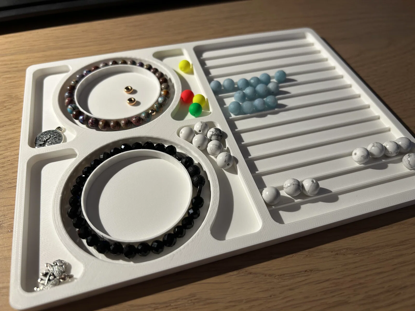 Sử dụng khay này, bạn có thể thực hiện cùng lúc nhiều mẫu vòng khác nhau mà không sợ nhầm lẫn hạt. Các rãnh tròn được thiết kế vừa vặn để ướm thử độ dài của vòng tay, giúp bạn hình dung được kích thước thực tế khi đeo lên tay. Đây là công cụ tuyệt vời cho những ai tỉ mỉ, thích sự ngăn nắp và muốn tối ưu hóa thời gian làm vòng tay thủ công. Dù bạn là người mới bắt đầu hay thợ làm trang sức lâu năm, chiếc khay in 3D này chắc chắn sẽ mang lại trải nghiệm làm việc thoải mái và hiệu quả hơn rất nhiều.