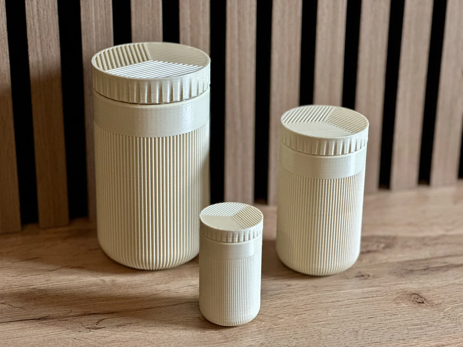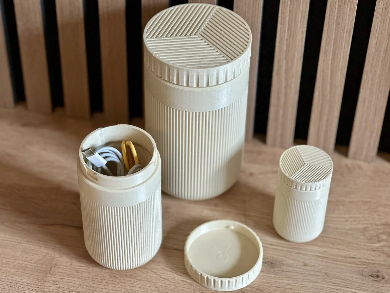 Travel Boxes là bộ hộp tròn nhiều kích thước, lý tưởng để sắp xếp đồ dùng khi đi du lịch. Có cơ chế quick-lock dễ đóng kín, bề mặt textured dễ cầm nắm và thiết kế gọn tiết kiệm chỗ. Kèm file STEP để tùy biến.