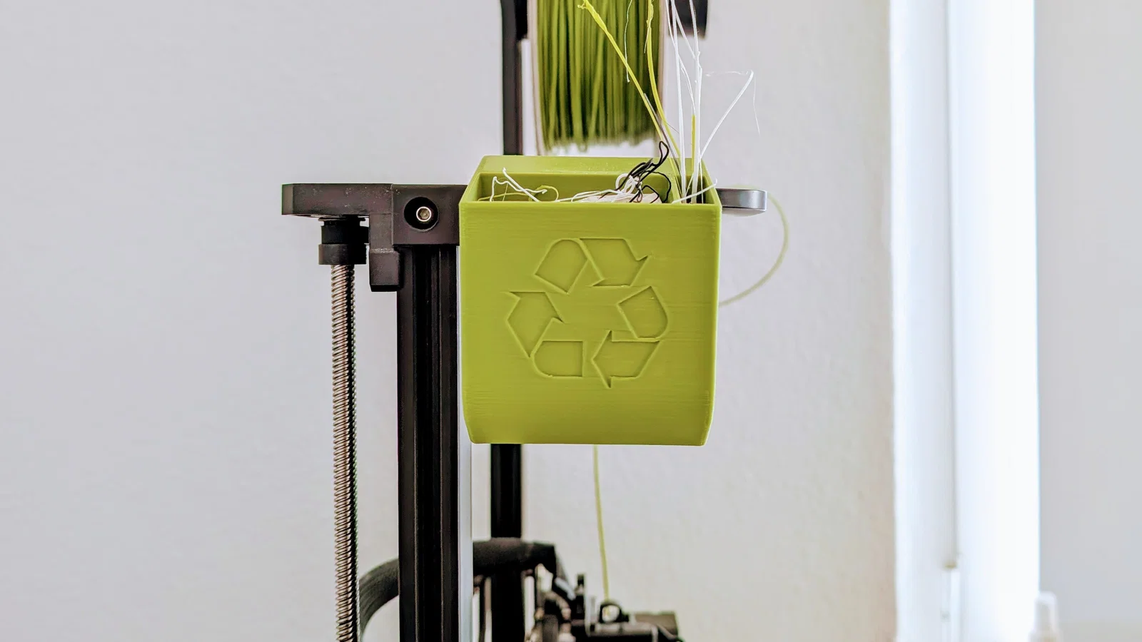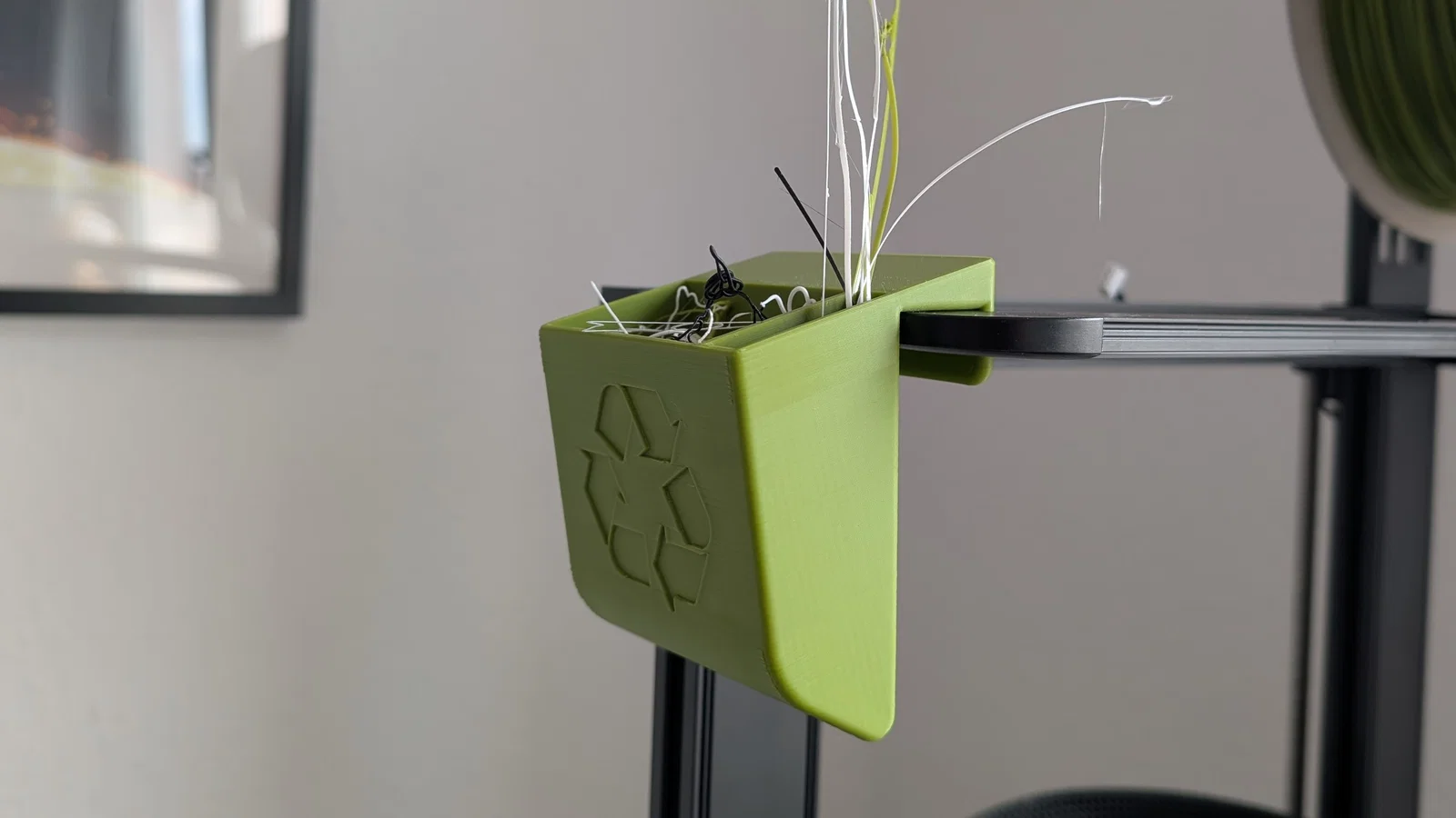 Nhìn không đẹp chút nào, đúng hông? Nói thiệt: trước đây mình cũng từng để một cái thùng rác cạnh máy in 3D. Nhưng dùng vẫn hơi bất tiện. Để bệ cửa sổ gọn sạch hơn và tiện tối thiểu khi sử dụng, mình nghĩ ra một cái thùng rác nhỏ có thể gắn trực tiếp lên Creality Ender 3 S1 Pro.