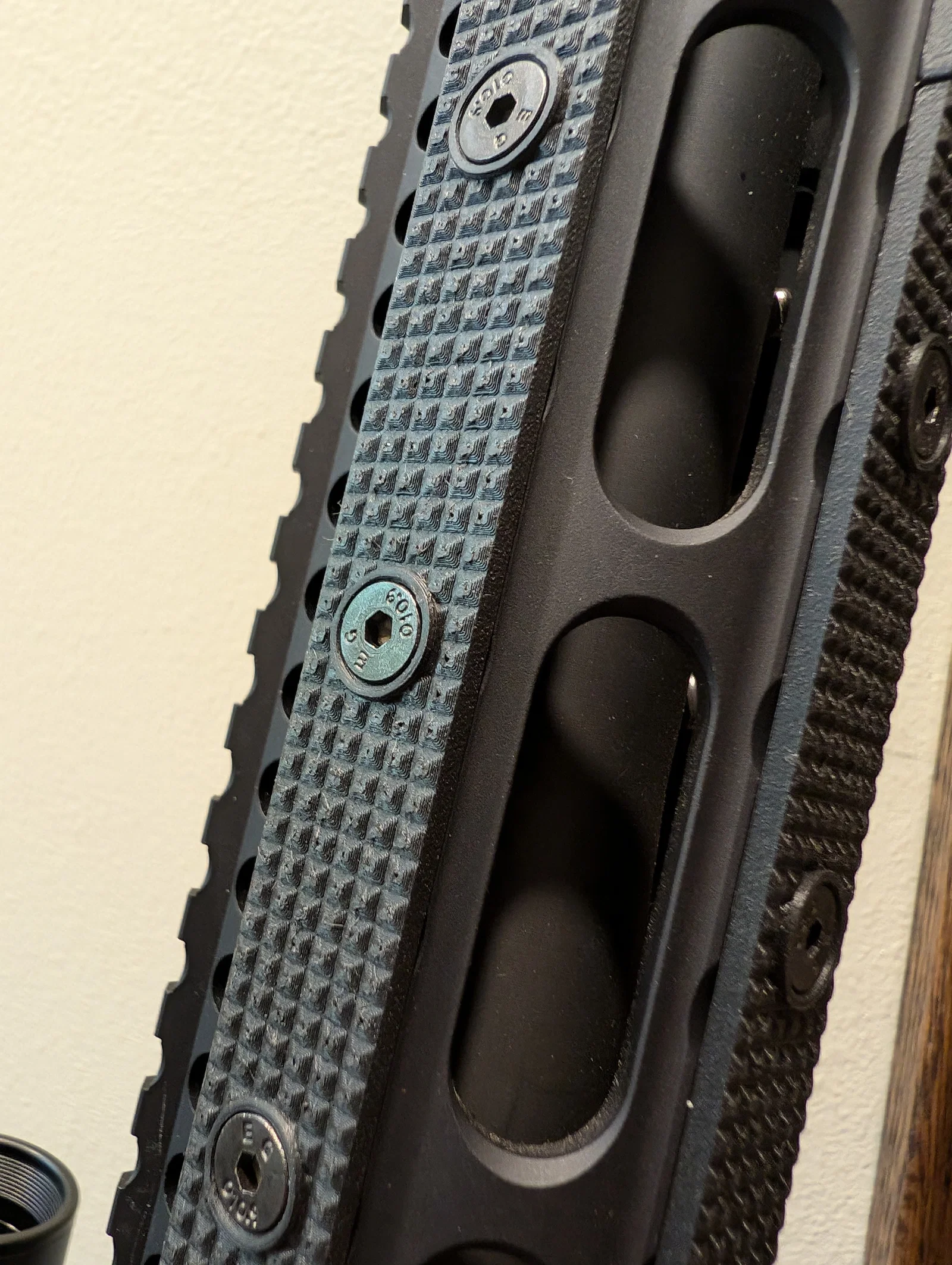 M-Lok handguards có 2 chiều dài 4.5in và 9in. Bản trong hình đang gắn trên rail Midwest Industries 12.625in .308.