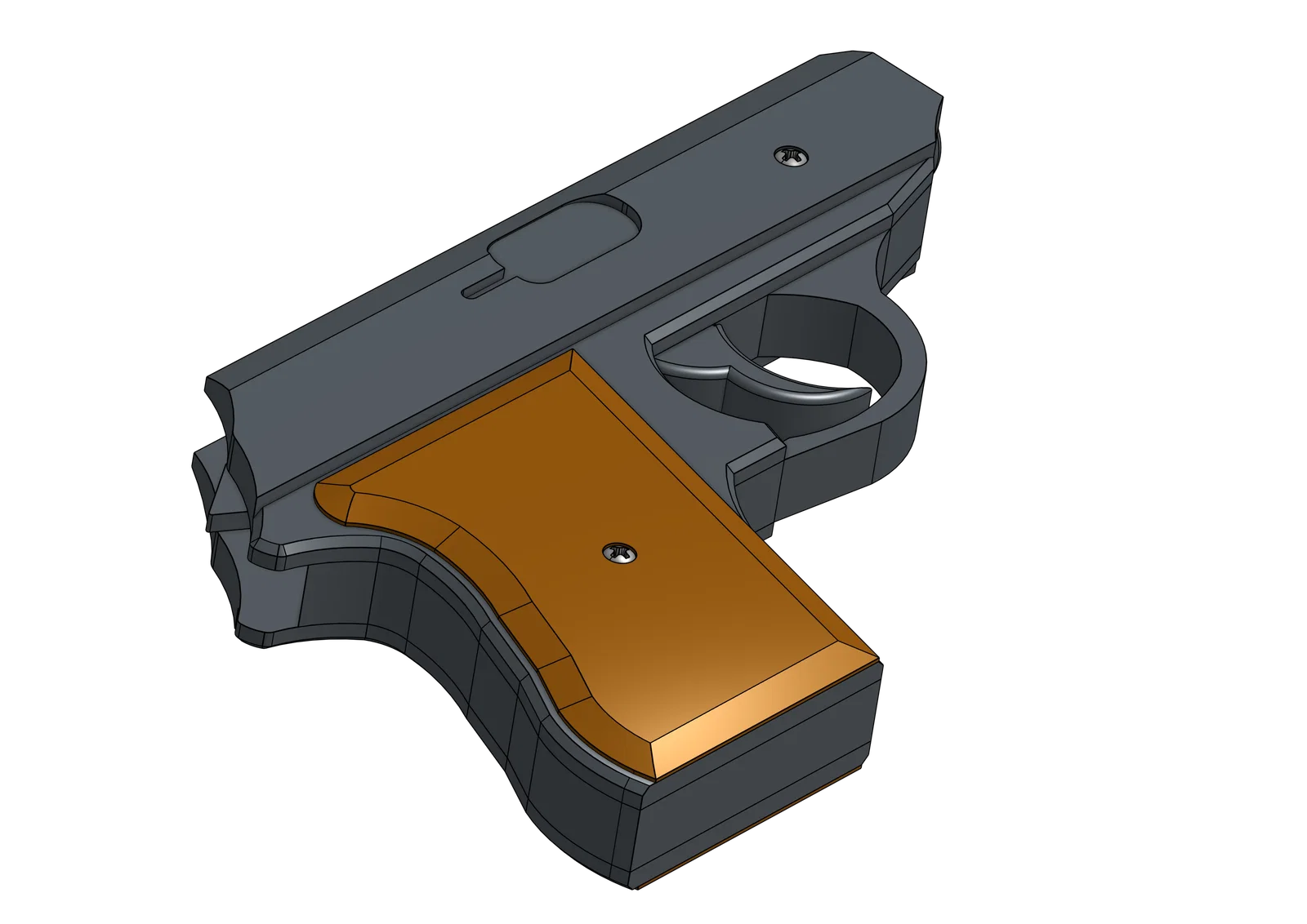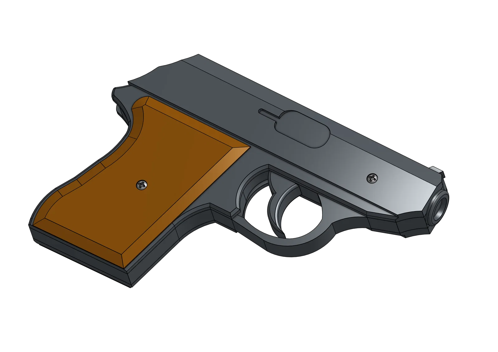 Bản replica Walther PPK tỉ lệ 1:1 in 3D dạng rubber band gun nhỏ gọn, ít phải lắp ráp. Khuyến nghị dùng loom bands, bắn ổn định 3 sợi thun. Có hướng dẫn PDF; cần thêm que gỗ 3mm, vít M2x10 và lò xo 7x19mm.