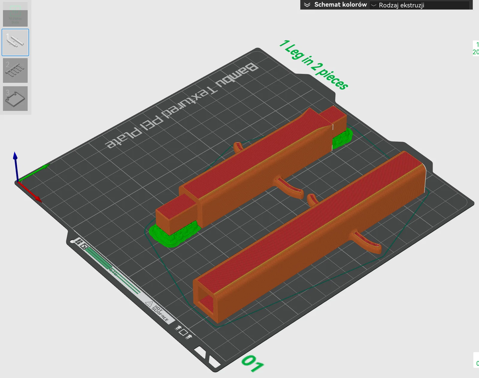 Chỉ cần supports cho phần nối Chân (Leg connections). Một lần nữa, mình đã set đúng sẵn trong file .3mf.