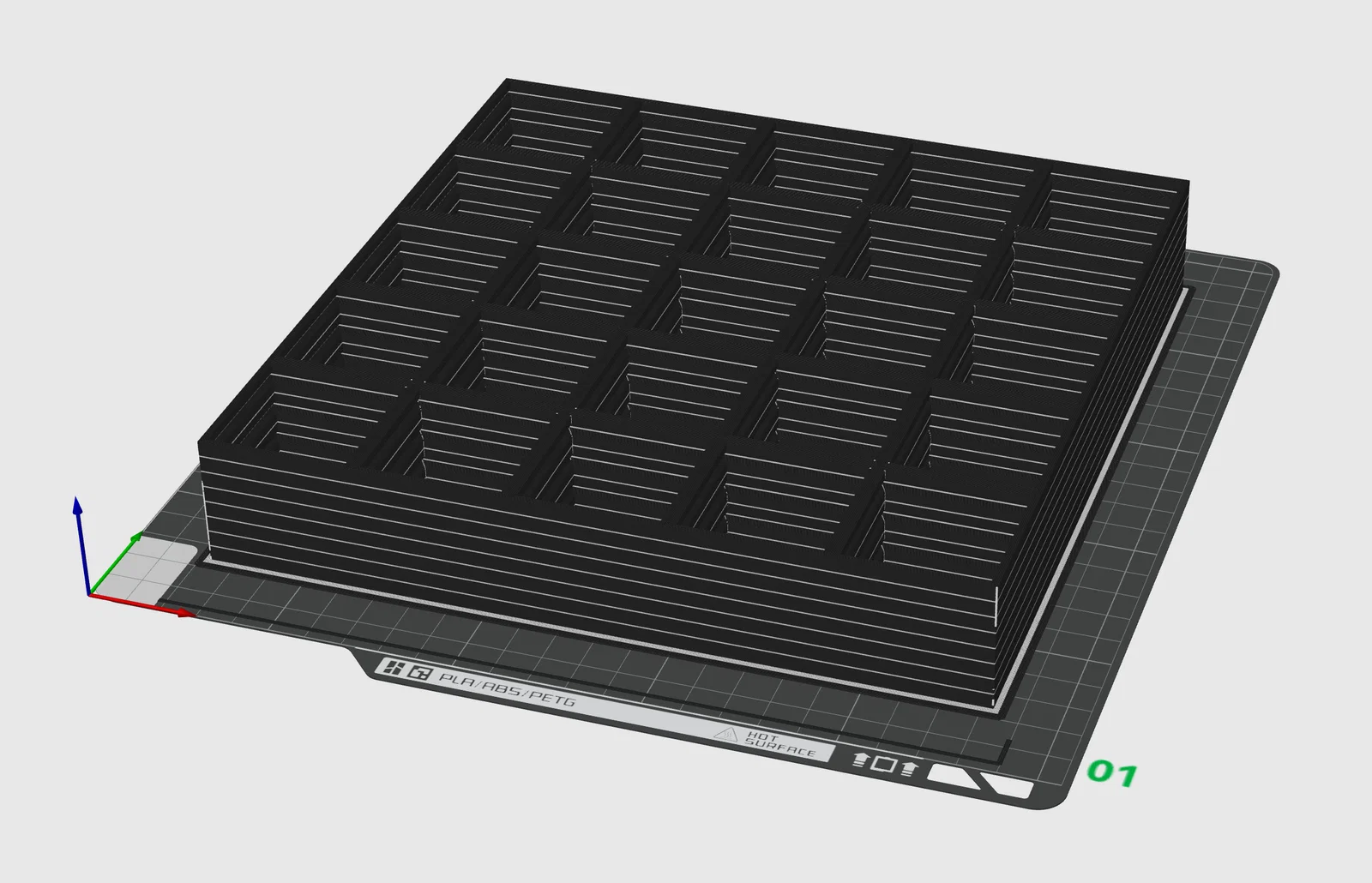 Giải pháp in chồng 8 tấm nền Gridfinity (5x5) cho máy in Bambu Lab
