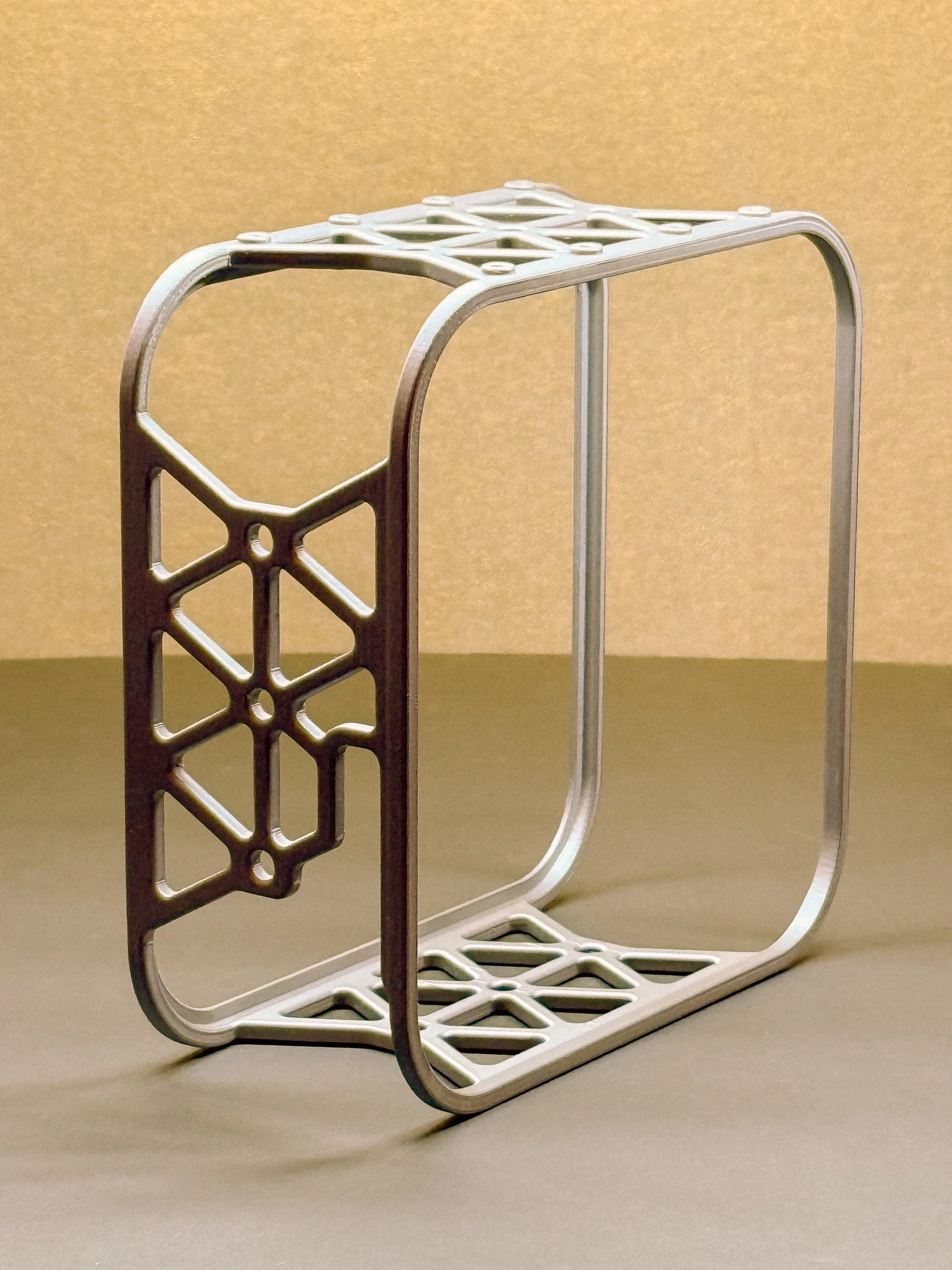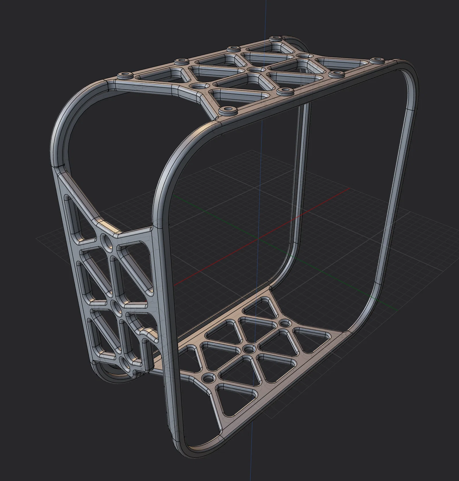 Mình muốn dời Mac Studio khỏi mặt bàn và giấu gọn đi, nên mình thiết kế cái “cage” ôm sát này bằng Plasticity 3D để giữ máy chắc chắn ở phía dưới bàn.
