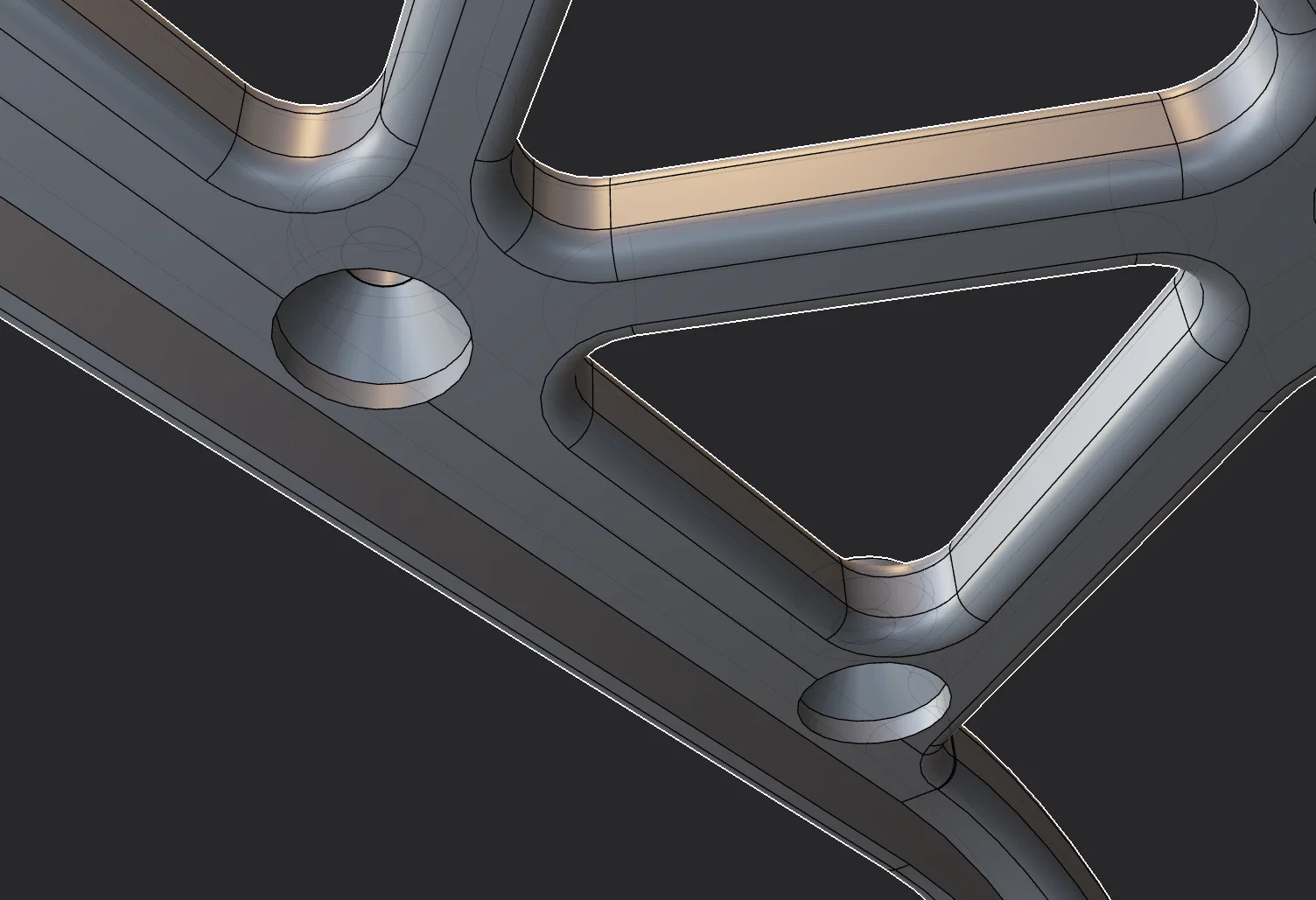 Mình chừa 8 lỗ bắt vít dạng counter-sunk ở mặt trên để cố định lên bàn. Khi lắp thực tế mình dùng 4 con vít là thấy đủ chắc rồi, nhưng bạn có thể dùng nhiều hơn tuỳ mức độ yên tâm.