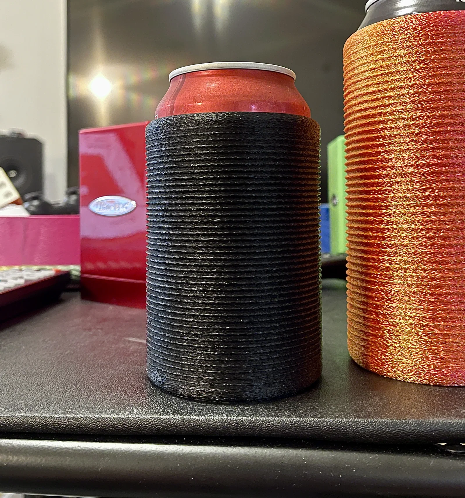 Mấy cái này lấy ra khỏi máy in là vừa khít luôn, nhưng lưu ý: đừng để trong xe hơi nóng nếu bạn in bằng PLA vì nó sẽ bị co lại (mình đã dính vụ này rồi). Xem profile của mình để tìm mẫu koozie dạng corrugated; cái đó chắc sẽ không gặp vấn đề tương tự.