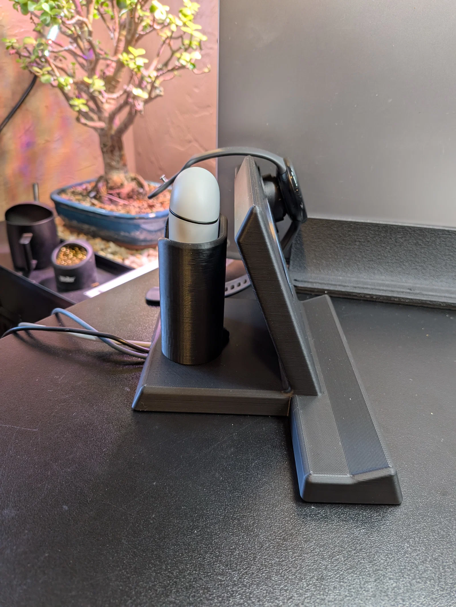Thiết kế bằng OnShape, in PLA (đen nhám) với support do slicer tạo (với loại filament mình dùng thì gỡ ra khá dễ). Bạn sẽ cần in cả hai file. Phần ngàm/đế gắn đồng hồ là cần thiết để đi dây gọn hơn.