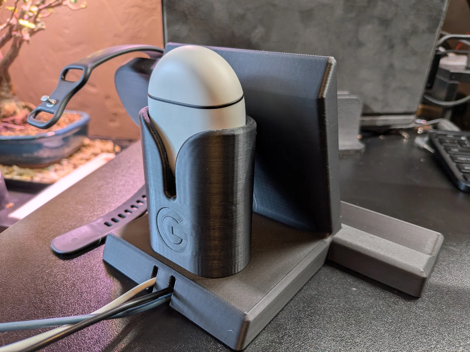 Mình đã tăng kích thước dock tai nghe để vừa hộp sạc lớn hơn, đồng thời nới rộng lỗ luồn cáp USB-C để dùng được các dây USB-C to hơn (nhưng có thể vẫn hơi hẹp với một số đầu cắm lớn).