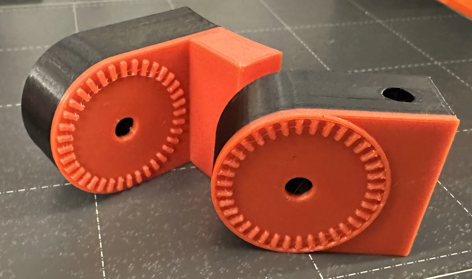 Cách in: tách file .stl thành từng object và đặt mặt lưng úp xuống bed (để phần răng/teeth nằm phía trên). Mình dùng infill 25%. Nếu bạn lo độ bền ở lỗ bắt bolt, tăng số perimeter lên 4 hoặc 5.