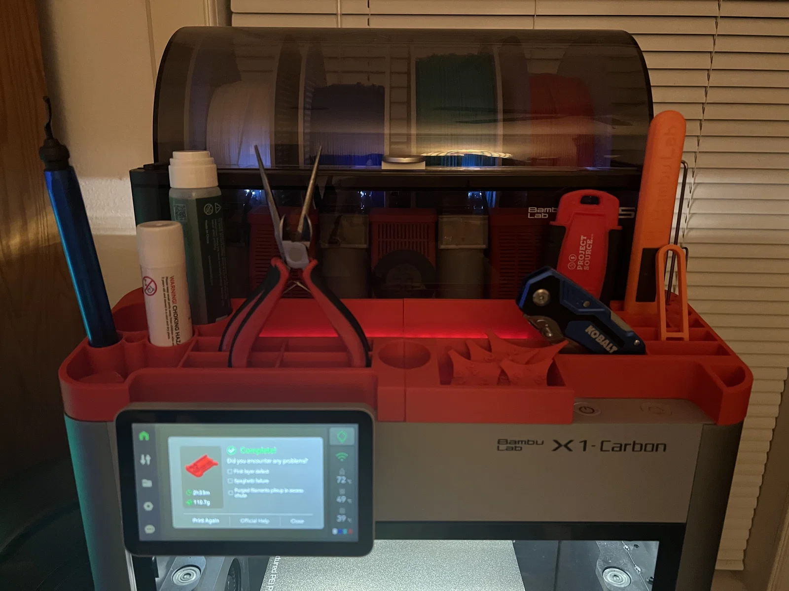 Sản phẩm này cực kỳ tiện lợi cho những ai thích làm việc gọn gàng, ngăn nắp và tối ưu hóa không gian làm việc. Các ngăn chứa được chia tách hợp lý để anh em cất giữ đủ loại kìm cắt, dao gọt, keo dán, hay các linh kiện nhỏ sau khi in xong. Việc để dụng cụ ngay trên máy giúp tiết kiệm thời gian tìm kiếm, giúp quy trình bảo trì máy in sau mỗi phiên chạy trở nên trơn tru và chuyên nghiệp hơn rất nhiều.