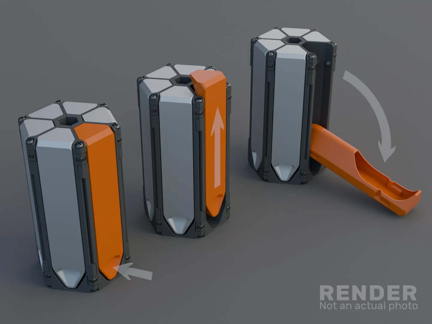 Có Container tiêu chuẩn (HexContainerStandard.stl), bản mở rộng “chunky” (HexContainerExtended.stl), bản dung tích lớn hơn nhưng miệng nhỏ hơn (HexContainerCapacious.stl) và bản cắt hở miệng (crop top) để bỏ đồ vào mà không cần mở Container (HexContainerCrop.stl). Ngoài ra còn có đầy đủ các tổ hợp giữa các phiên bản này. Container có thể nhét vào và lấy ra khỏi Segment, sẽ cần dùng lực một chút.
