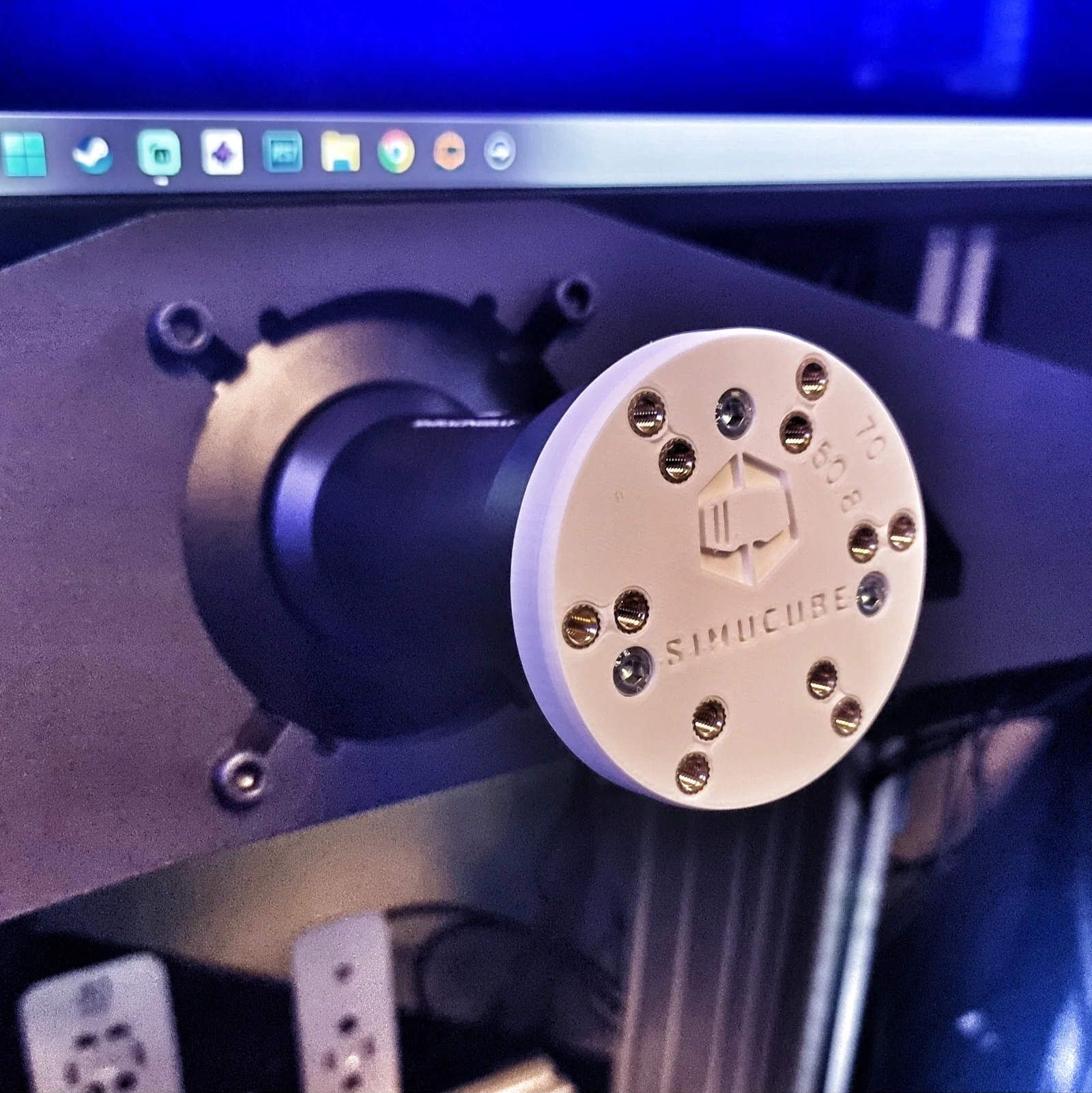 Đây là một adapter plate lắp ở phía motor của Simucube 2 Wheelbase.