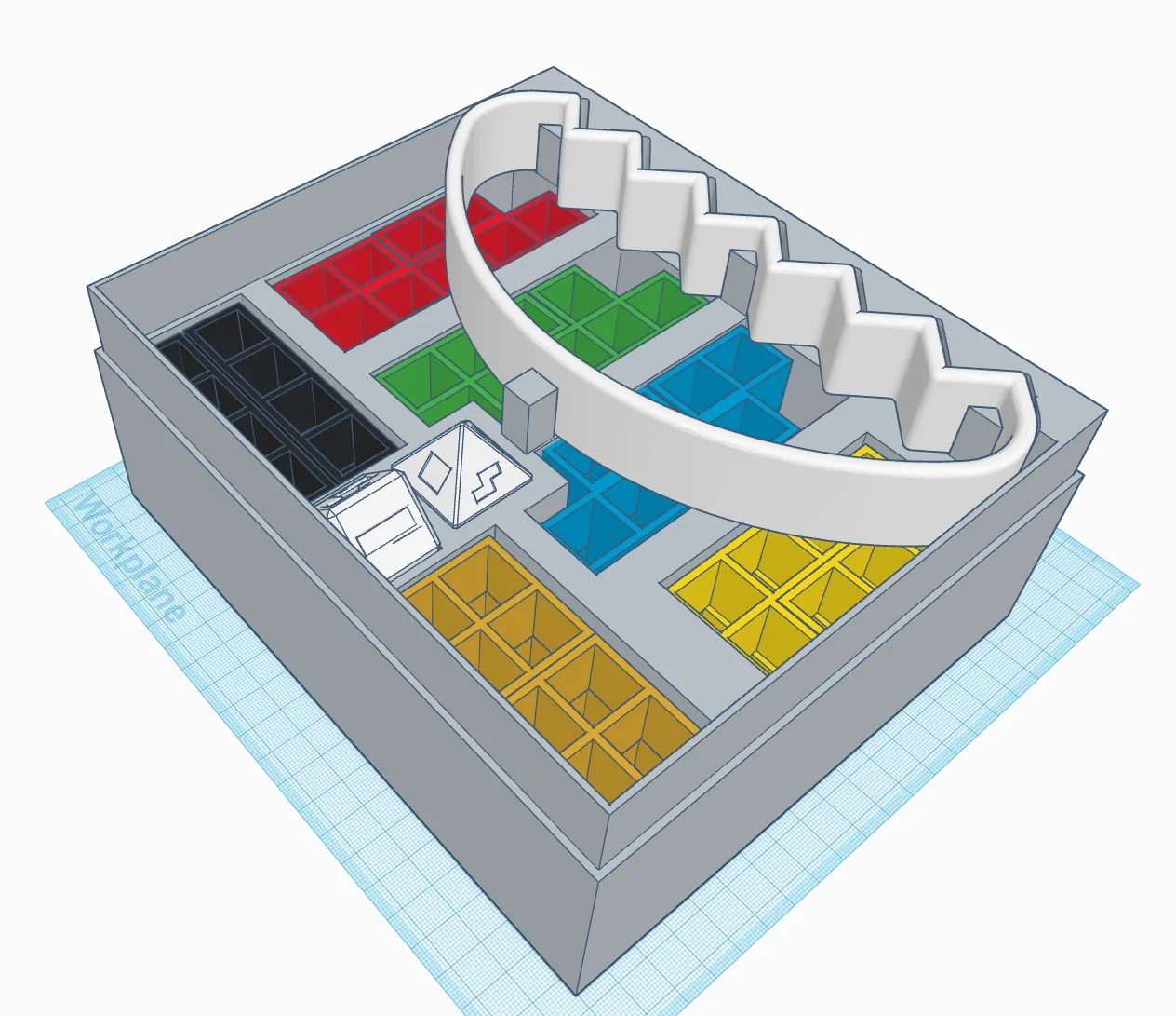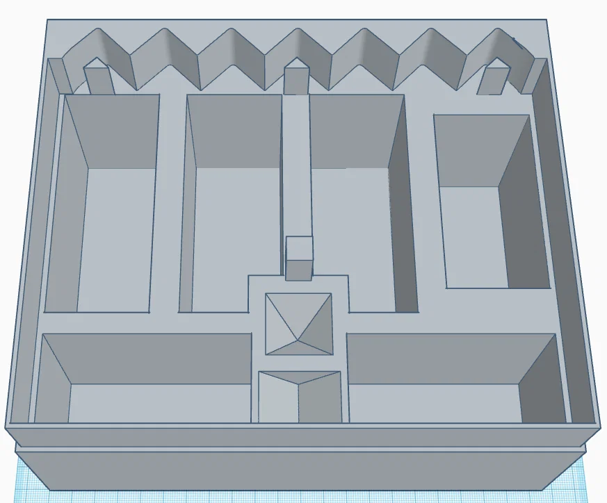 Cái hộp này mình làm từ đầu, lấy cảm hứng từ thiết kế của "estocdiken - https://www.thingiverse.com/thing:6408369" — một thiết kế hay, có sẵn các ngăn cho từng miếng thay vì chỉ là một cái hộp trống.