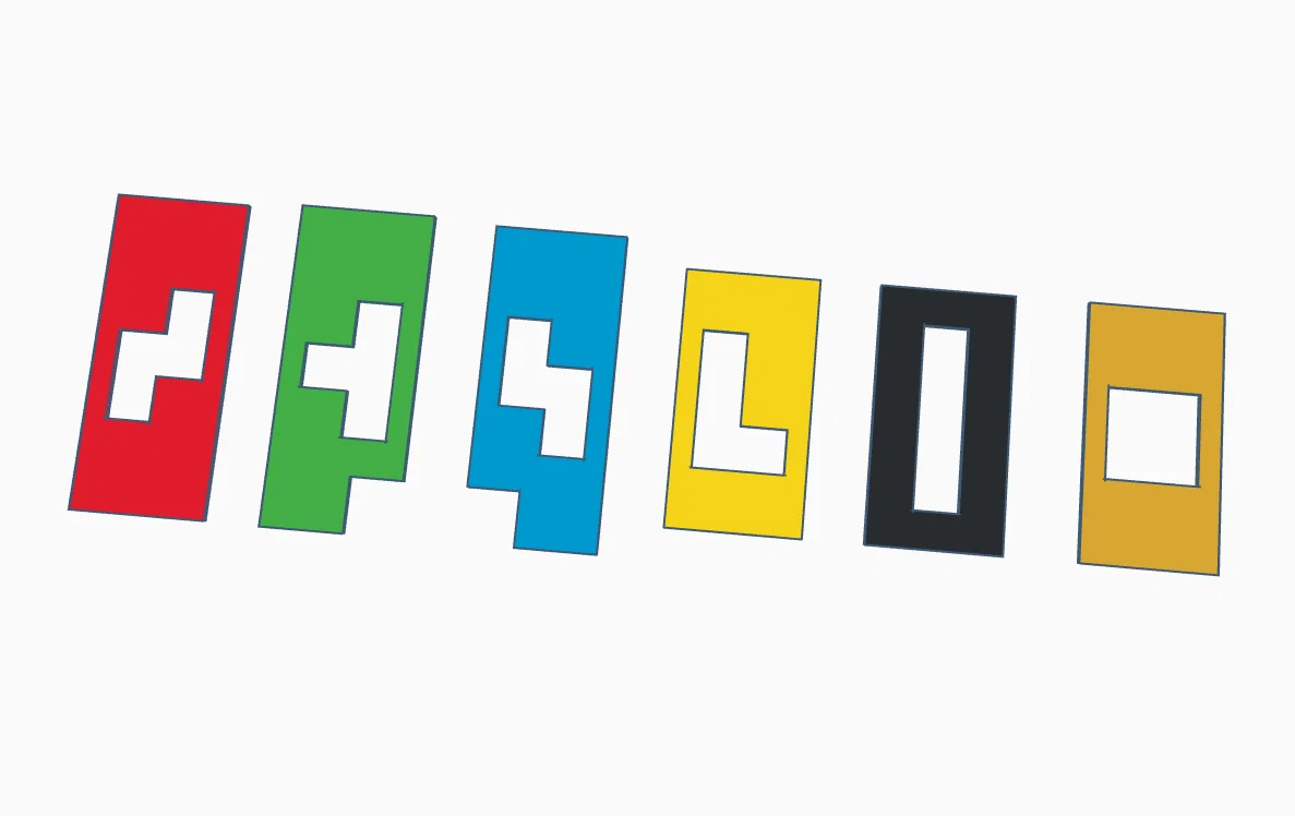 Ở bản v1.1, mình tạo thêm vài tấm plate để in theo màu của các miếng, để dễ nhìn và biết miếng nào nằm ở vị trí nào.