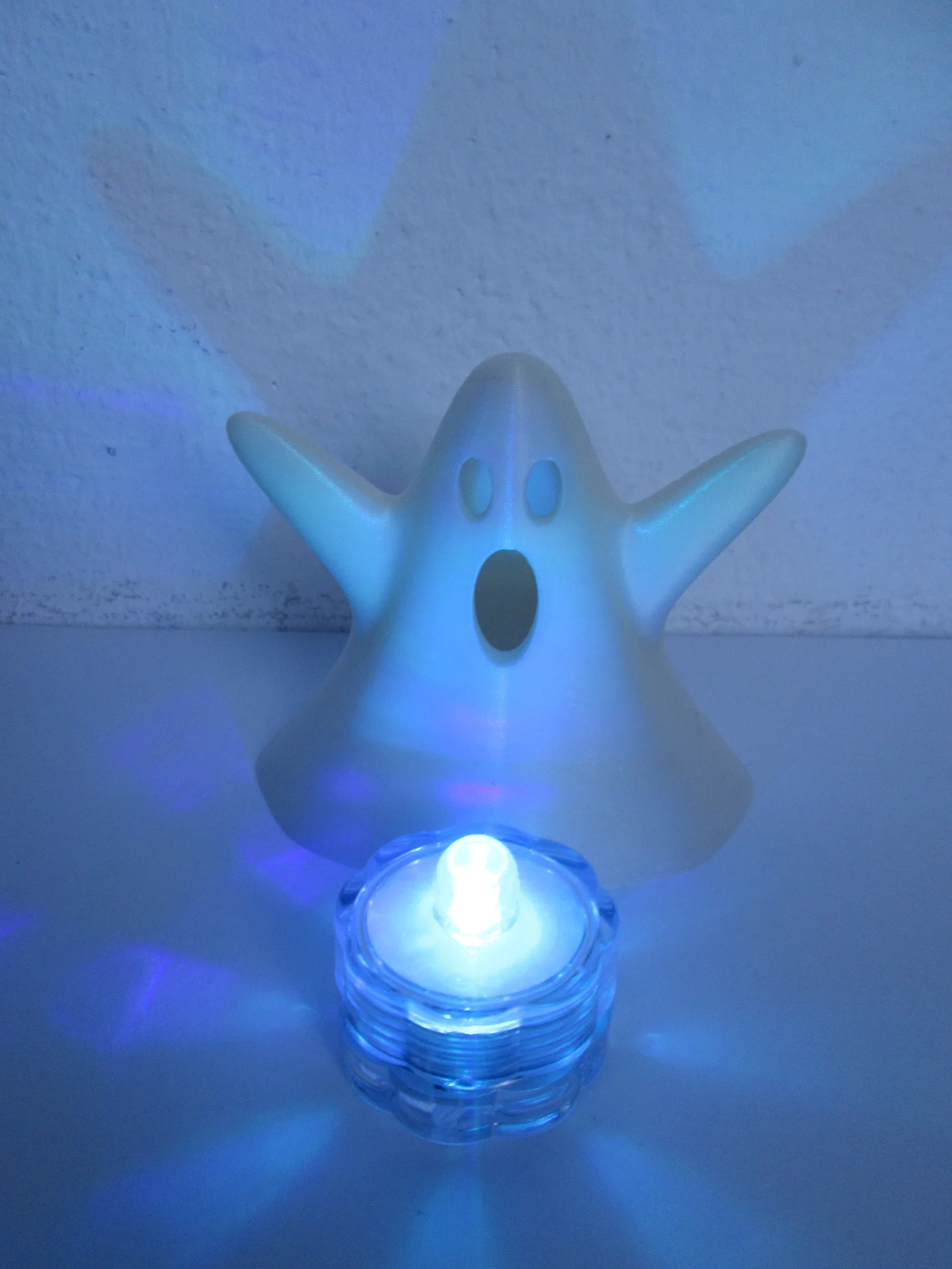 Mẫu Halloween Ghost (NO SUPPORTS) mừng Halloween 2022. Thiết kế in không cần supports; gợi ý thông số: PLA, nozzle 0.4, infill Gyroid 15%, 3 vòng perimeter. Có link tham khảo đèn và kênh YouTube của tác giả.