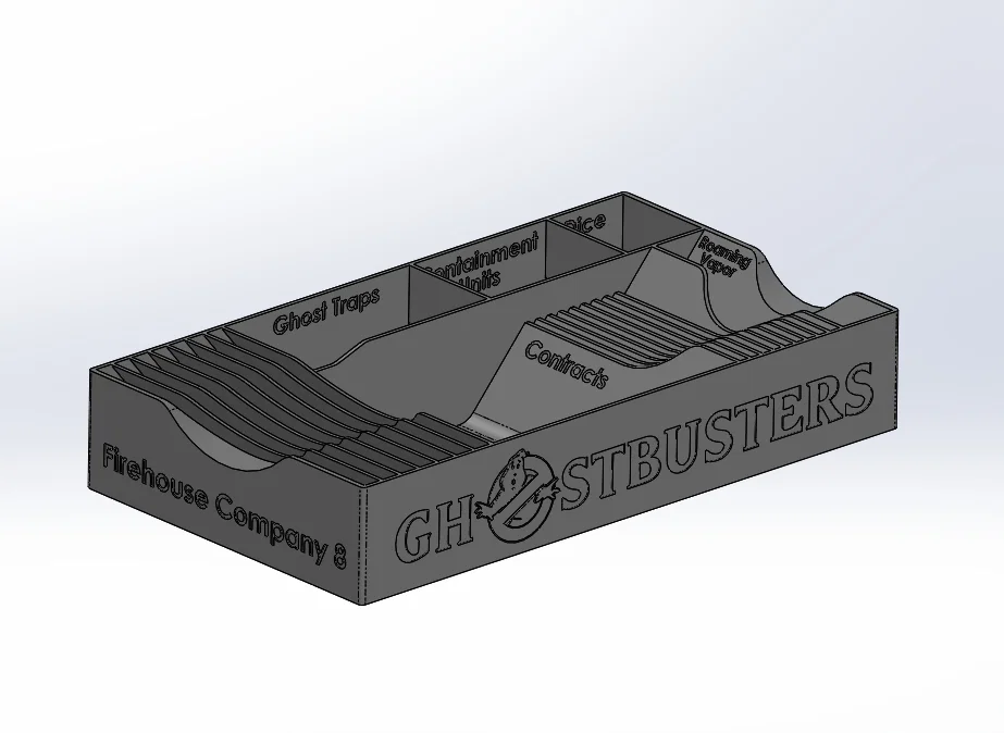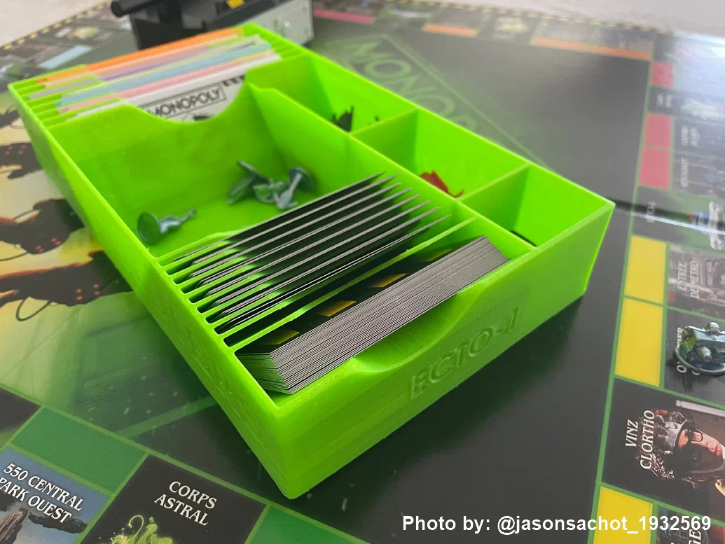 Bộ khay organizer và Player Tray dành cho Monopoly: Ghostbusters Edition. Khay chính 234×132.2×41mm, dùng được lúc chơi lẫn cất trong hộp. Dễ in với PLA; có adhesion helper disks và các ngăn chia hợp lý.