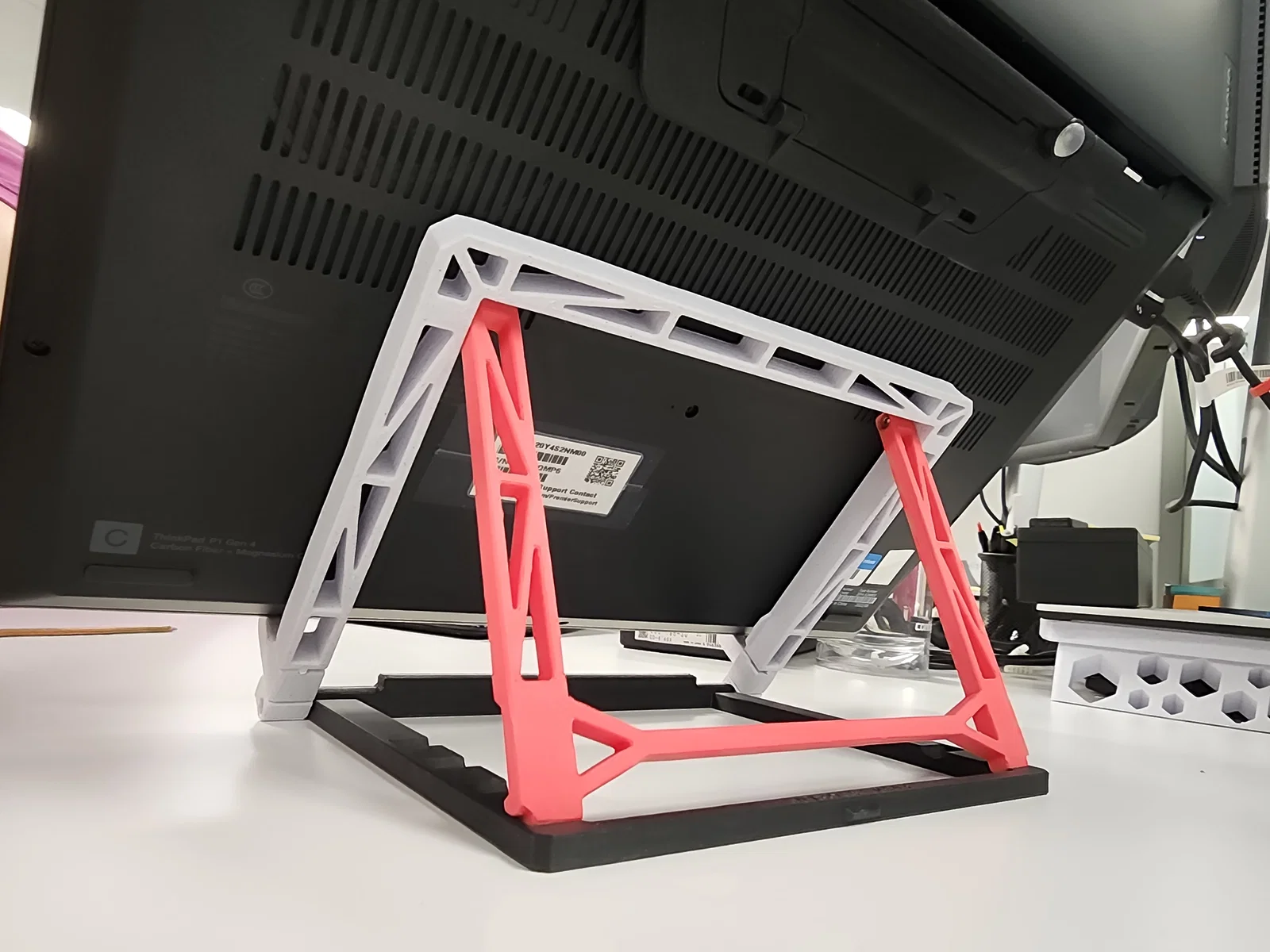 Tiếp nối mẫu laptop stand trước đó của mình kiểu gập “gần như phẳng”, mình muốn tinh chỉnh thêm để làm ra phiên bản có thể cất “phẳng hoàn toàn”. Không còn chi tiết nào bị lồi ra để dễ mắc/kẹt vào đồ khác.