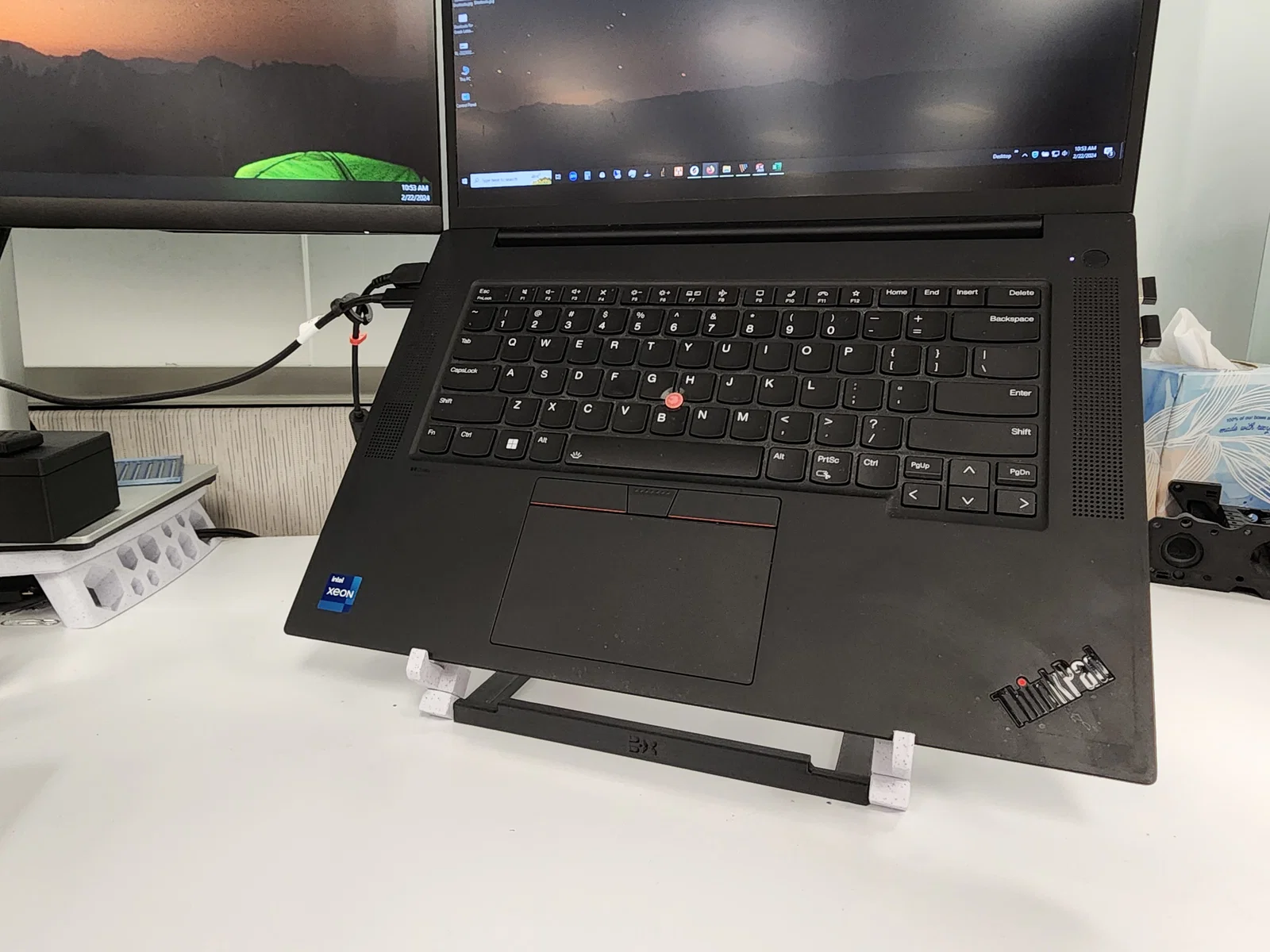 LƯU Ý: Stand này được thiết kế để giúp canh màn hình laptop ngang tầm với màn hình rời (như trong hình) và giả định bạn dùng keyboard rời, nên có thể không phù hợp nếu bạn muốn gõ trực tiếp trên bàn phím laptop.
