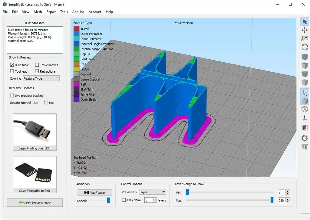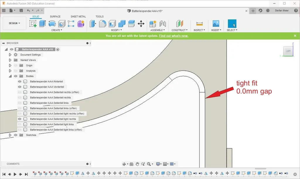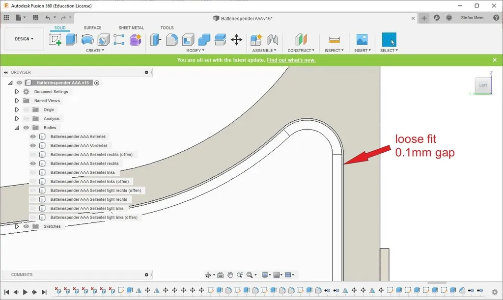 Tôi có 2 phiên bản của các tấm bên, một cái mở và một cái đóng. Tôi đã sử dụng một bên mở và một bên đóng như bạn có thể thấy trong hình. Từ mỗi tấm bên còn có thêm 2 phiên bản với khớp chặt, tức là 0,0mm khe hở hoặc 0,1mm khe hở. Tôi đã in tấm bên với 0,1mm khe hở, như vậy tôi có thể dễ dàng thay thế.