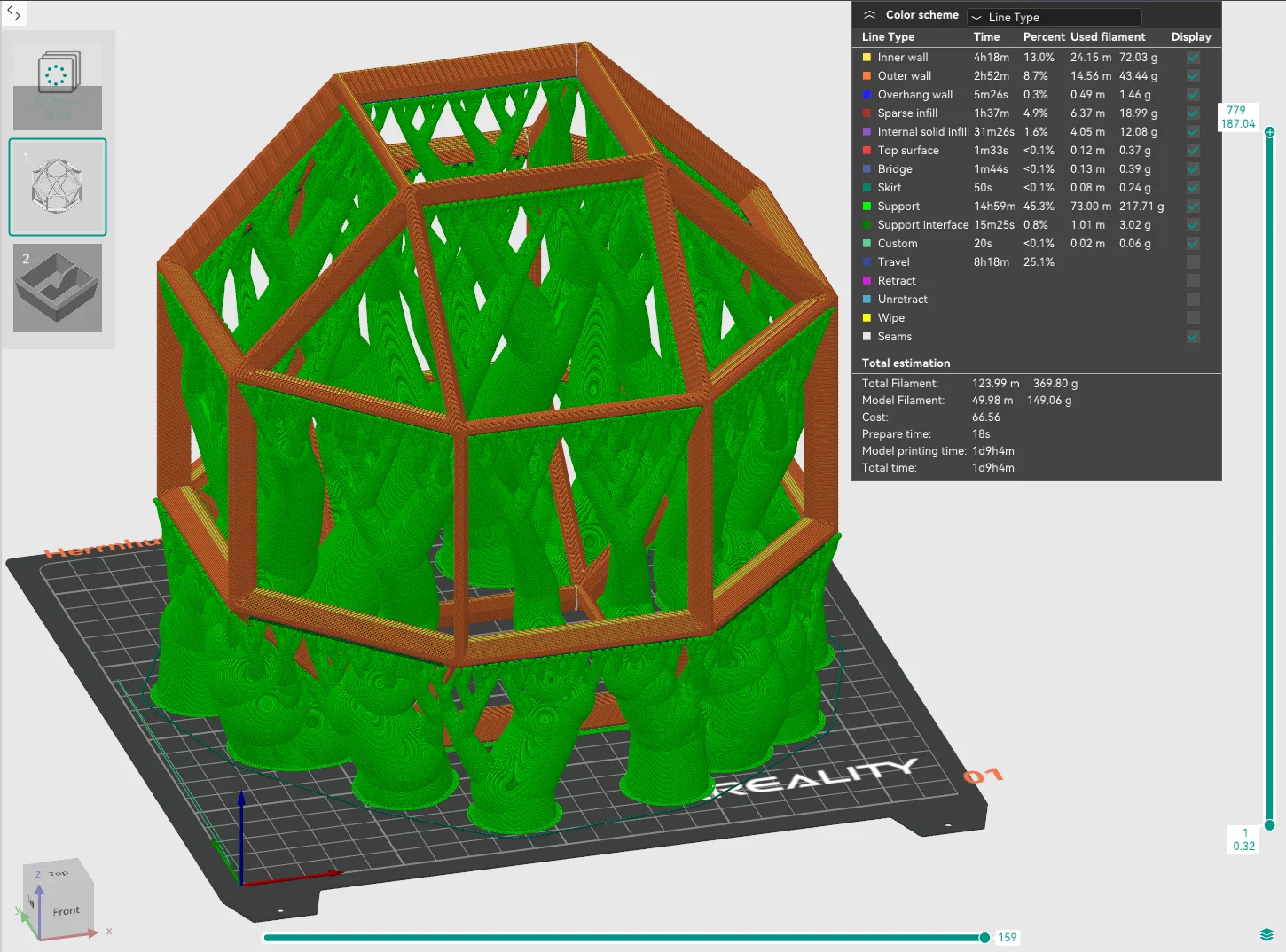 Mình đưa từng loại chi tiết vào slicer, rồi scale từng cái lên kích thước lớn nhất có thể, ghi lại mức scale nhỏ nhất tìm được, sau đó in tất cả chi tiết theo mức scale đó để tối đa hóa kích thước ngôi sao theo khổ máy của mình (Creality Ender 3 S1 Pro).