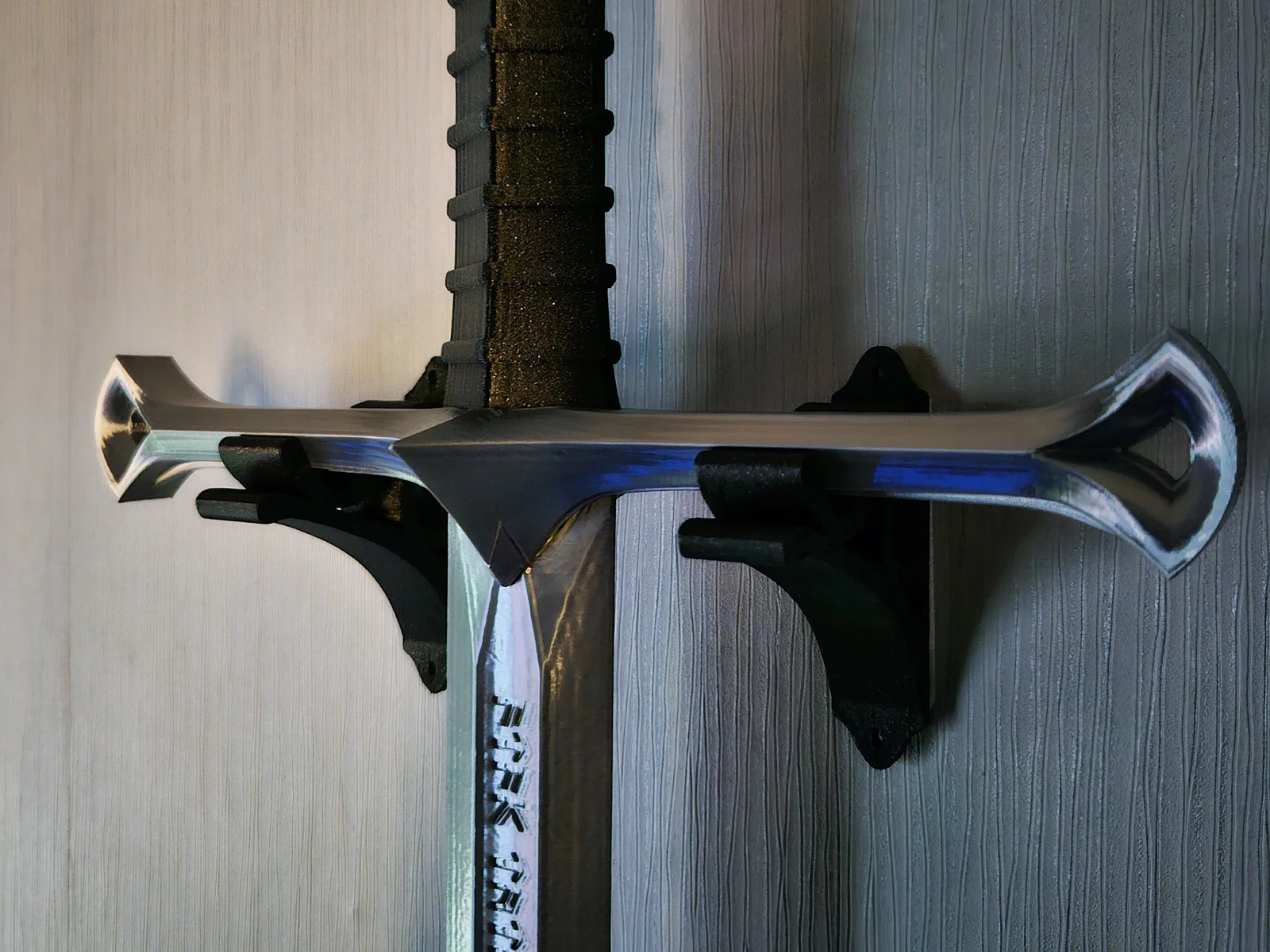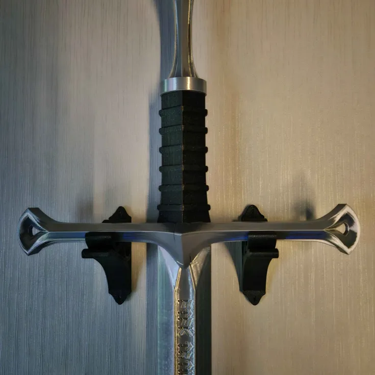 Mount treo tường cho các thanh kiếm prop in 3D (Narsil/Andúril). File đã canh sẵn đúng orientation để in, chỉ cần slice. Có thể dán như miếng treo tranh hoặc bắt ốc/đinh (có thể cần nới lỗ).