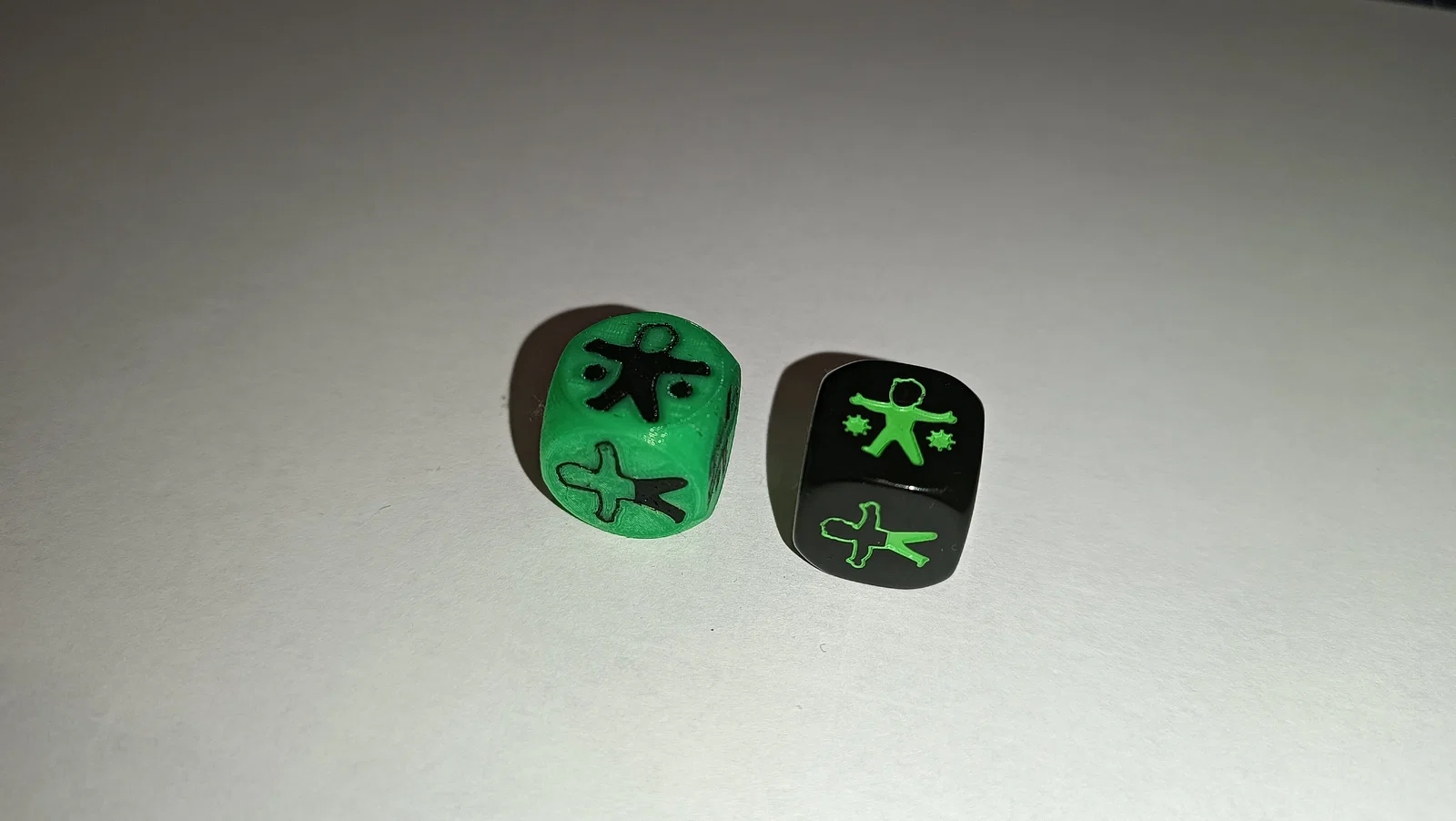 Mình cũng thêm khả năng in một viên xúc xắc dự phòng (MMU - mình khuyên dùng nozzle 0,25) và một chốt (pin) cho game, phòng khi bạn lỡ làm mất. Trong hình là viên xúc xắc màu xanh cho DLC Atomic Bonds.