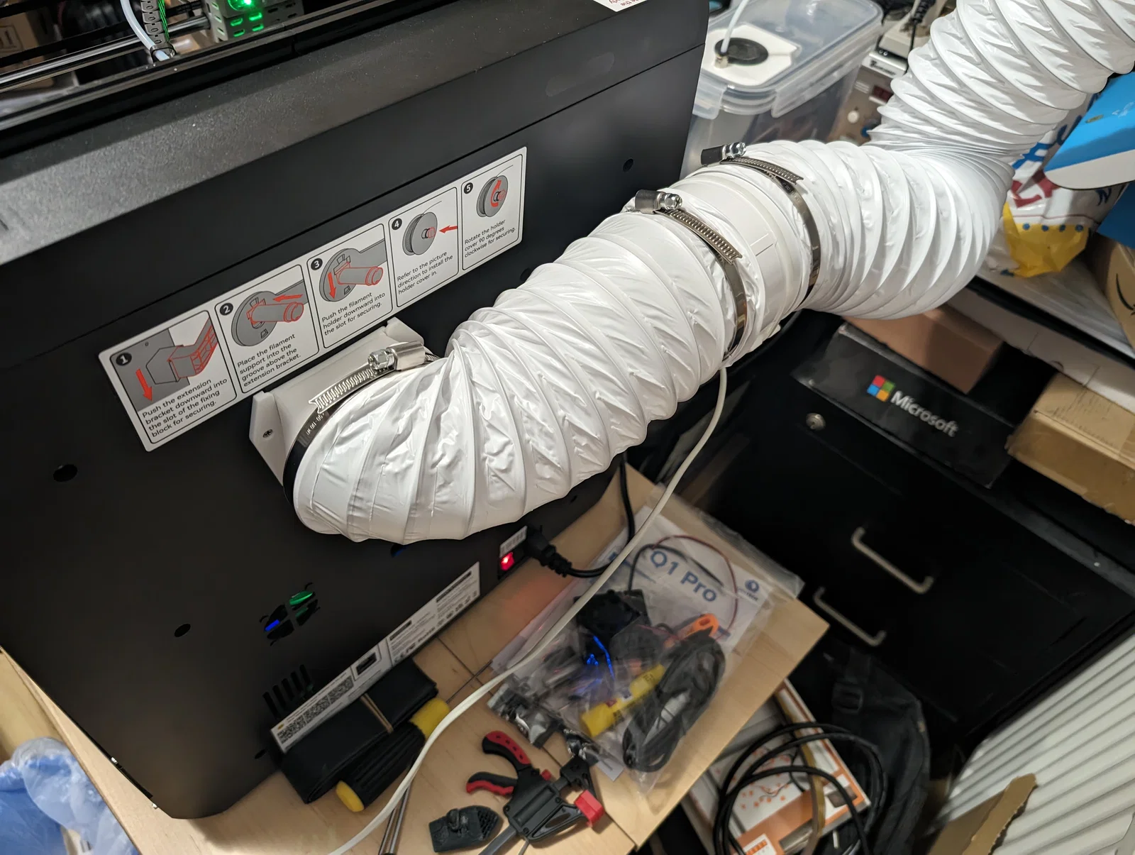 Mình làm hệ thống exhaust này cho đúng với setup máy in/cửa sổ nhà mình, nhưng chia sẻ lên đây phòng khi ai cần kiểu tương tự.