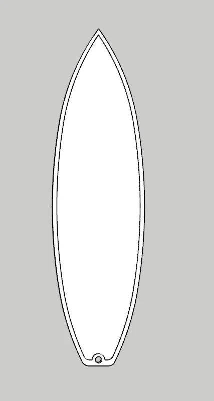 Mẫu Finger Surfboard (ván lướt sóng ngón tay) kích thước 140×38mm (không scale). Lòng trong dày 1mm, viền 2mm, lỗ 3mm. Có thể hơ nóng nhẹ để uốn cong phần đầu trước như ván surf thật.
