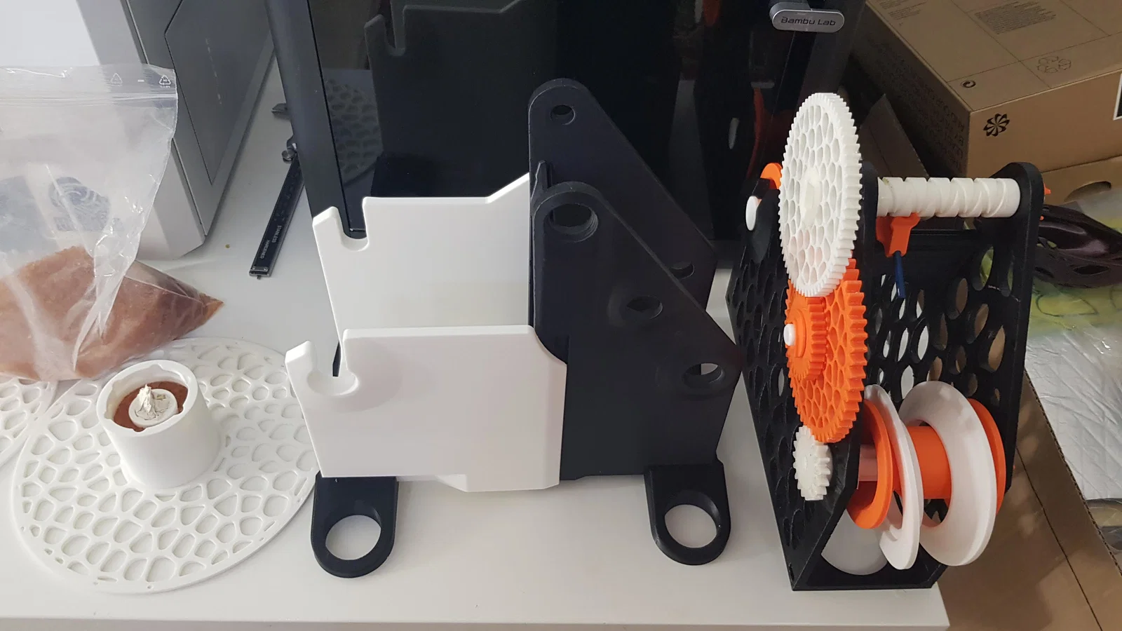 Biến thể của Cell Spool Winder theo các yêu cầu phổ biến: base không voronisation, base tách đôi để in trên bed ngắn hơn, và hỗ trợ lắp spool donor rộng 80mm+. Chỉ gồm 3 chi tiết đã chỉnh sửa.