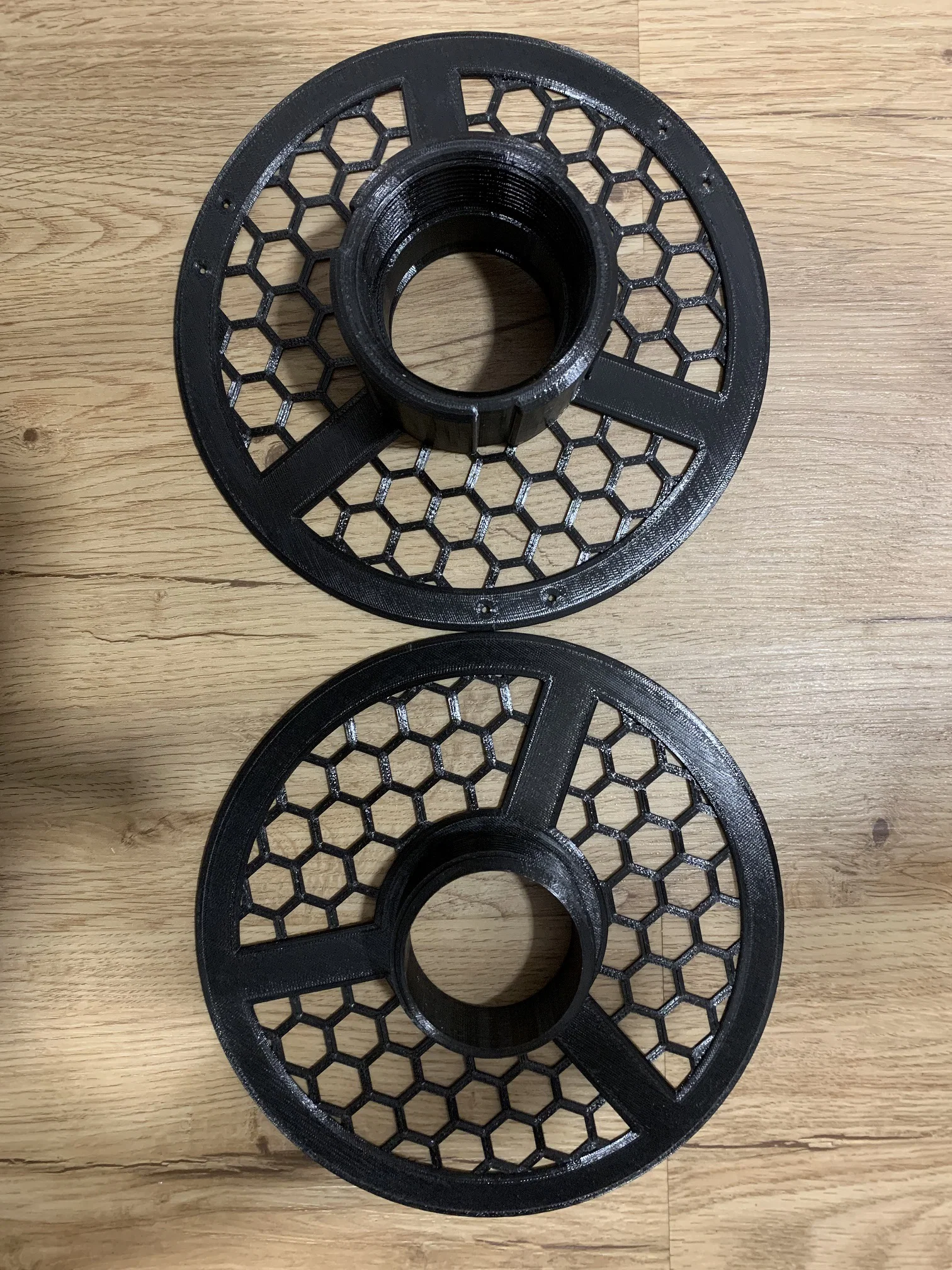 Cuộn spool tái sử dụng dành cho AMS Lite (bản V2 UPDATE): ren vặn mượt, có khoang nút cao su hai bên, honeycomb chắc hơn và thêm lỗ luồn filament. Hợp refill đường kính 79–80mm, in PETG 4–5 perimeters, không cần supports.