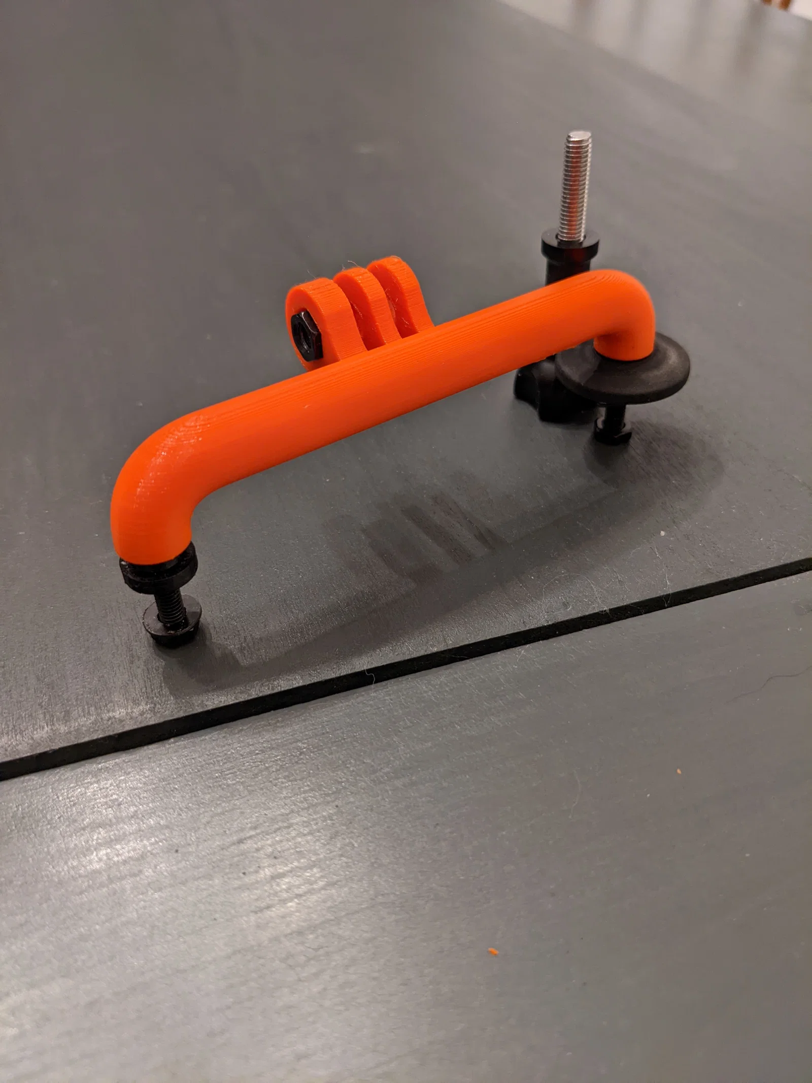 Mẫu ngàm gắn GoPro dùng cho bề mặt phẳng hoặc thay thế footman bar của Jeep Wrangler, bắt bằng 2 ốc M4 và cần thêm đai ốc M5 cho ngàm GoPro. Có tùy chọn ta rô M8 để gắn chắc hơn.