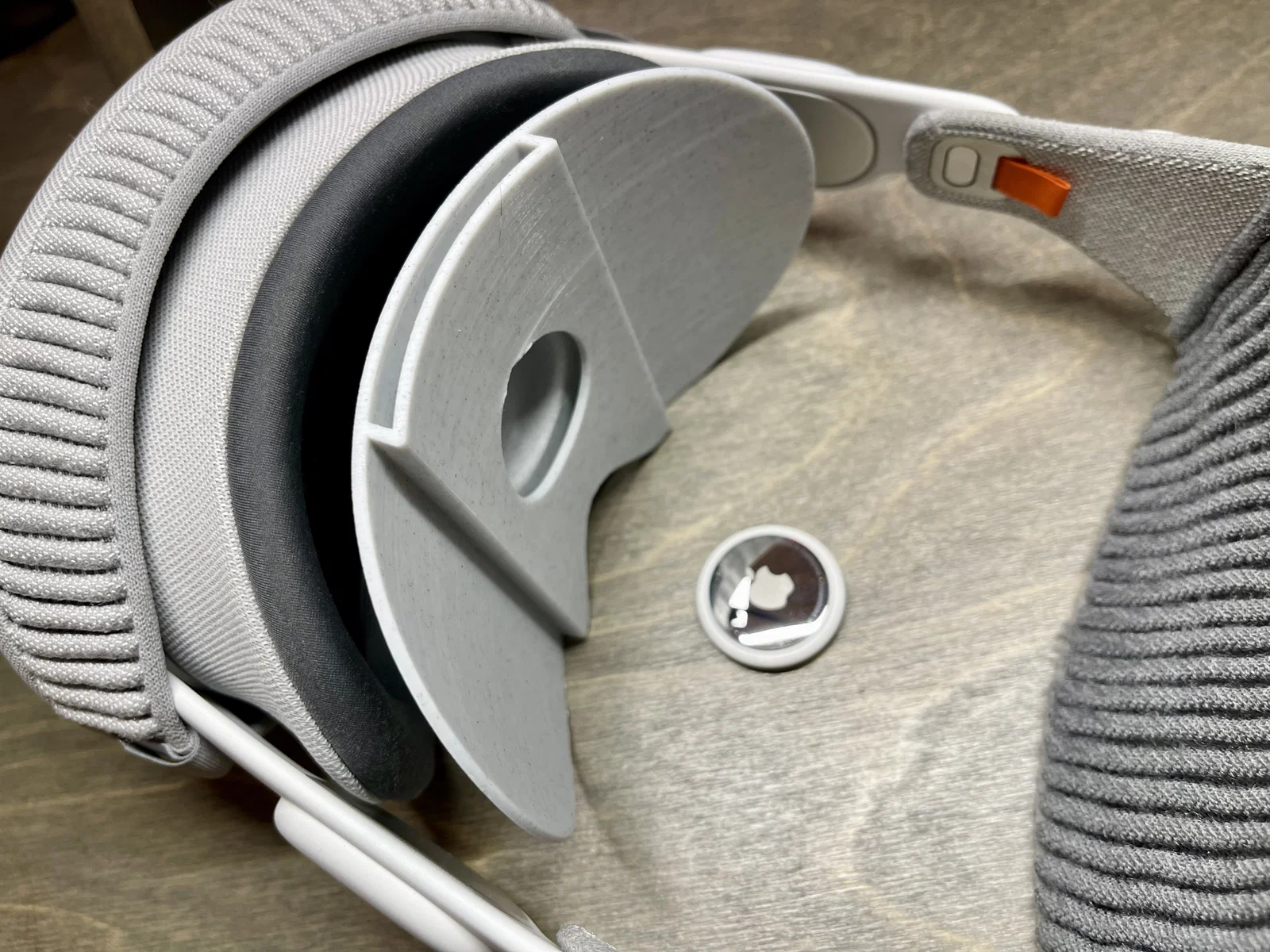 Vì Vision Pro không có hỗ trợ “Find My”, nên mình cũng tích hợp luôn một khe để gắn AirTag.