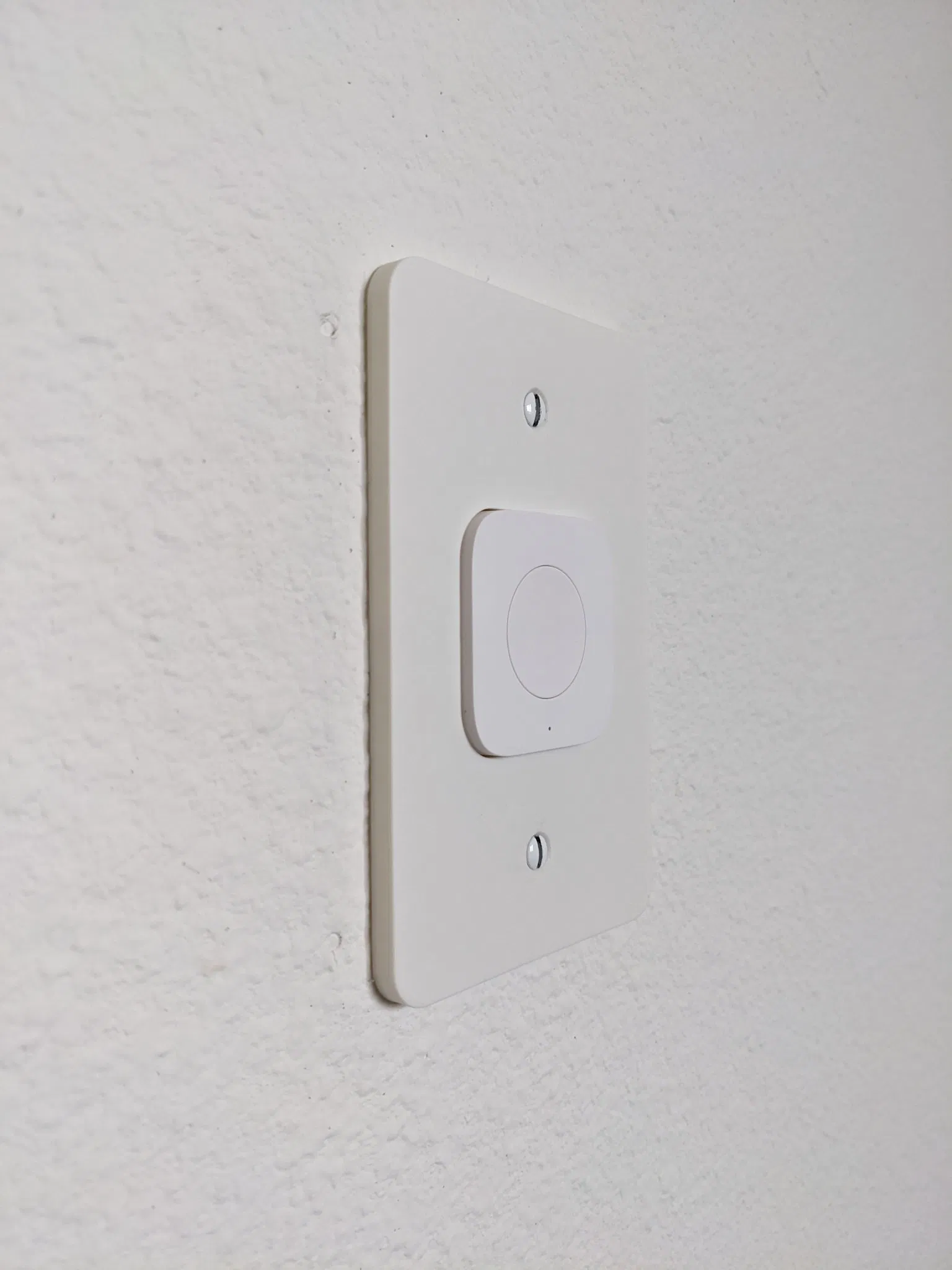Một tấm mặt được thiết kế để gắn công tắc mini của Aqara thay cho công tắc ánh sáng tiêu chuẩn.