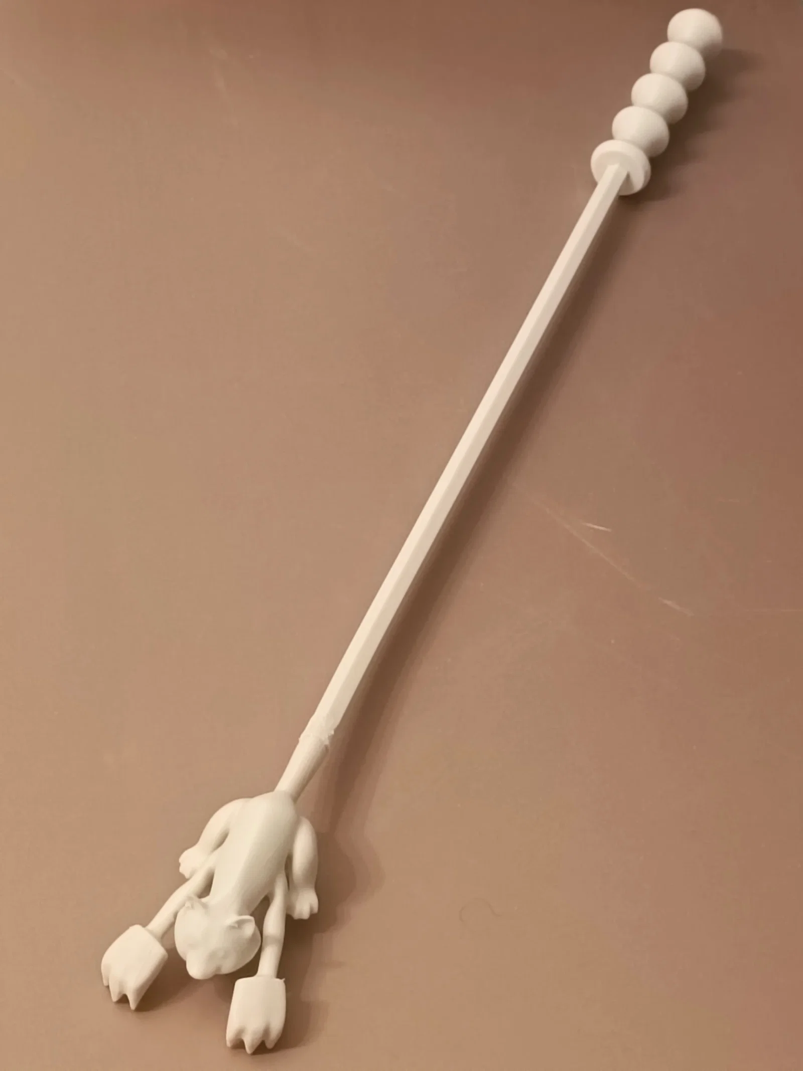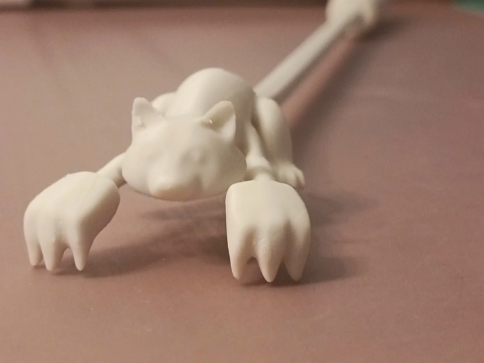 Mẫu CAT BACK SCRATCHER: cây gãi lưng hình mèo với “chân” to để gãi những điểm khó với tới, kèm cán cứng dài ~30 cm. In PLA (Sunlu), layer 0.1 mm, infill 10%, nozzle 220°, bed 65–70°.