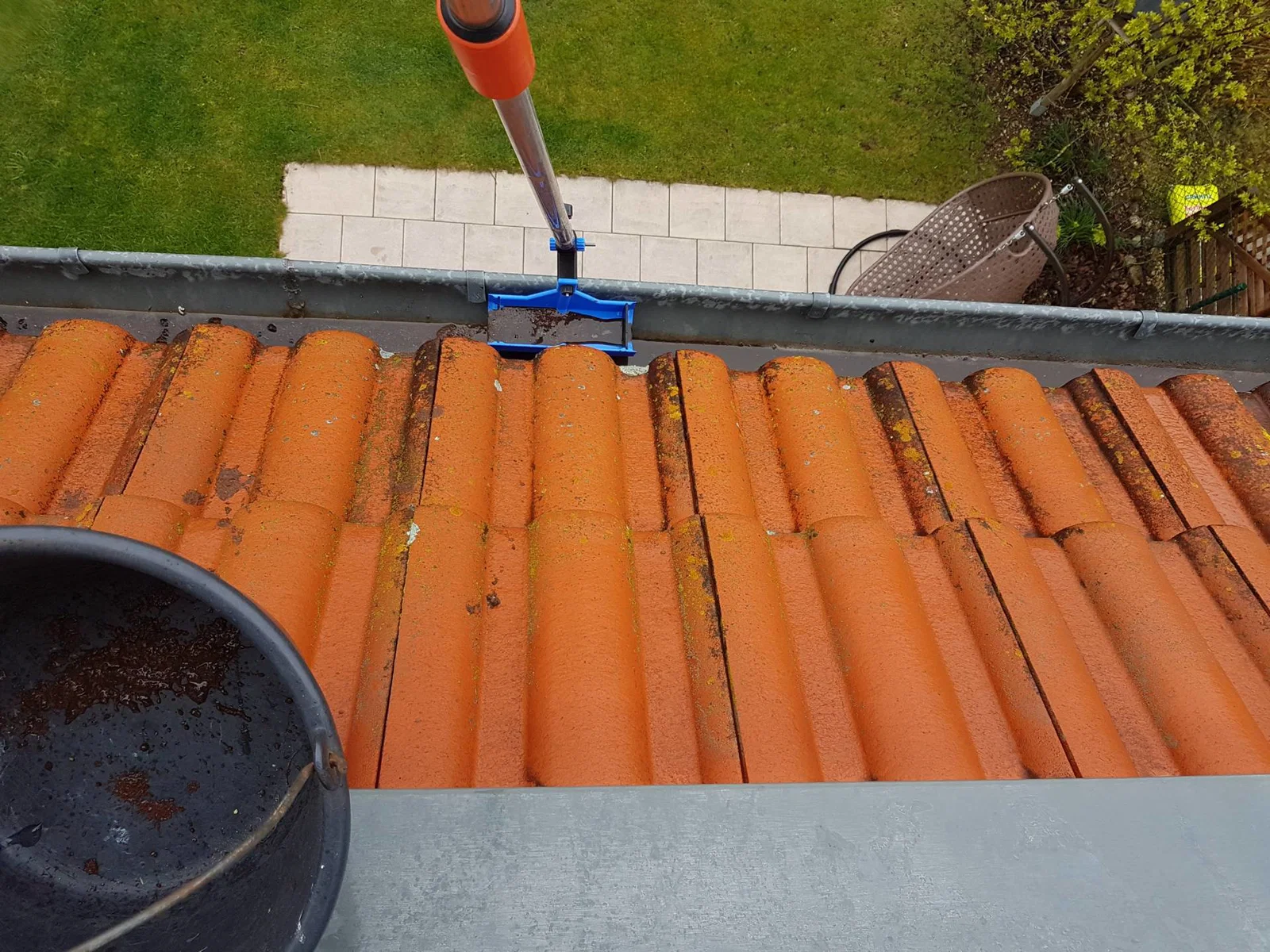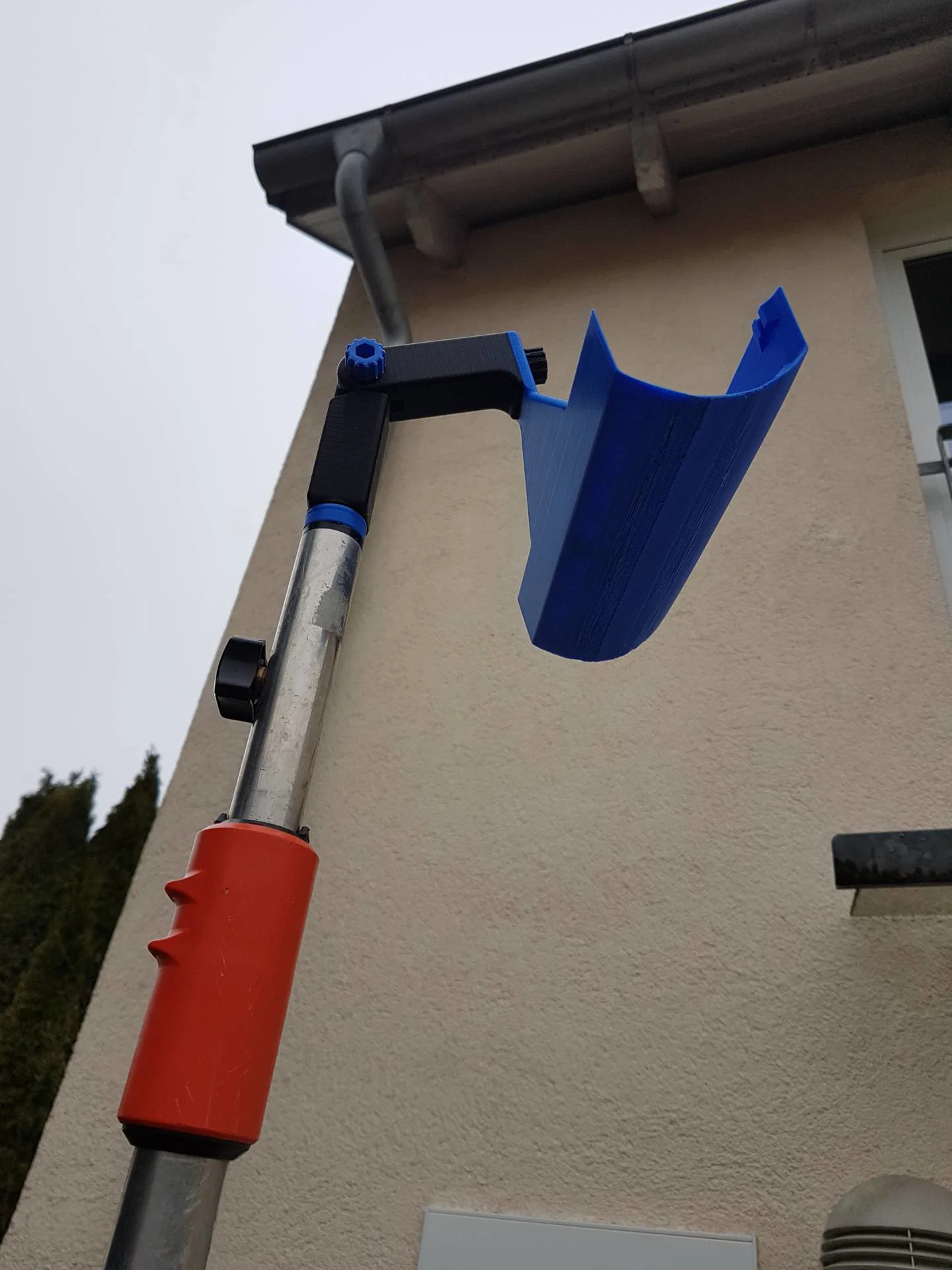 Vệ sinh máng xối (rain gutter) có thể khá vất vả nếu thang của bạn quá ngắn, không với tới mái. Vì vậy mình làm một cái muỗng xúc nhỏ (scoop/shovel) có thể gắn lên cán Gardena (loại telescopic).