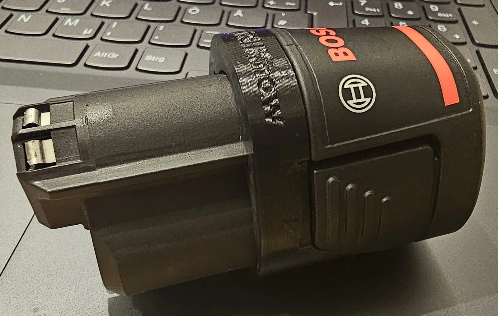 Giá đỡ pin cho Bosch Professional 12V 2.0Ah, phát triển dựa trên pin 2.0Ah thực tế. Dùng cơ chế khóa zin của Bosch nên giữ rất chắc. Khuyến nghị in PETG, layer 0.2mm, nozzle 0.4mm, không cần support.
