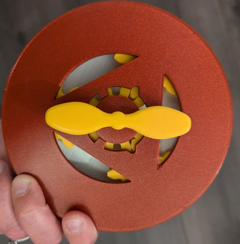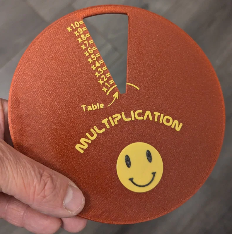 Dụng cụ vòng quay bảng cửu chương từ 1–12 để ôn luyện. Xoay tay quay để chọn bảng cần học. Dễ in và lắp ráp, in PLA; có file .stl, .3mf, .gcode kèm .step và .f3d để chỉnh dung sai.