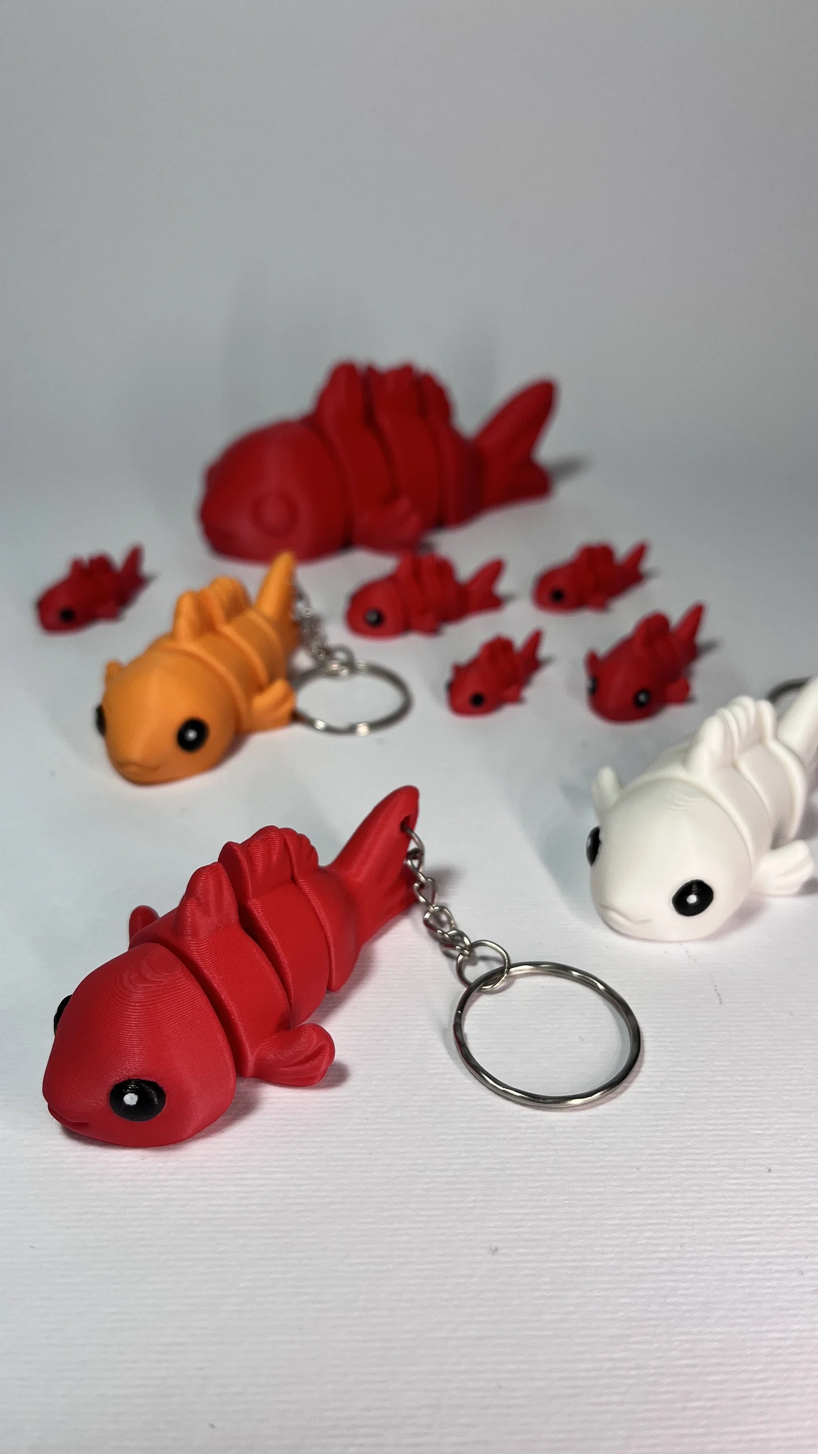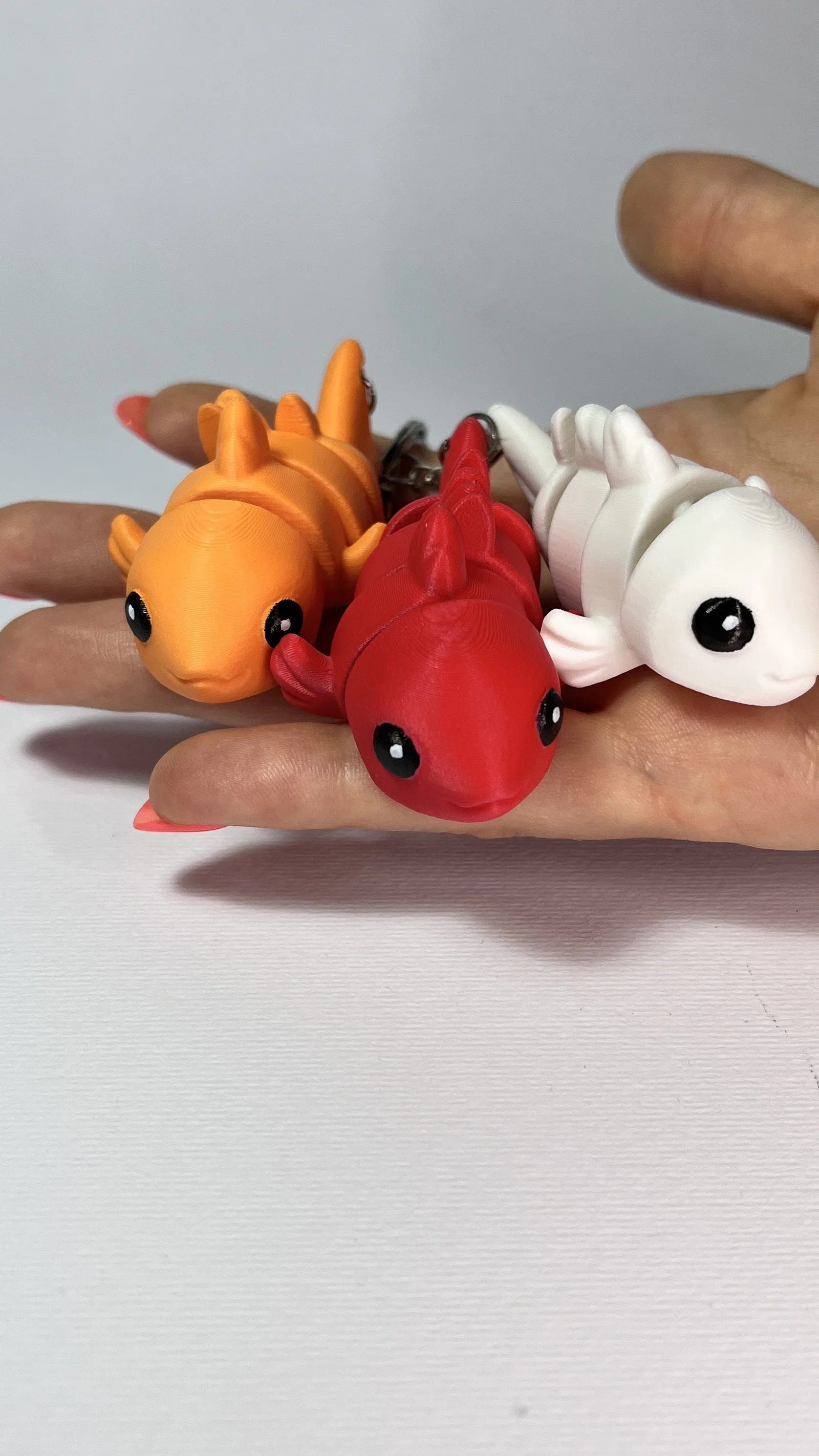 Mình muốn tạo một dòng thú flexi cỡ nhỏ mới, dễ in (print-in-place) và không cần supports. Mẫu số 21 là bé cá vàng dễ thương này, nhìn ổn không? 🐟 Print-in-place, Không cần Support. Có sẵn phiên bản đồ chơi, móc khóa và nam châm luôn! 🐟