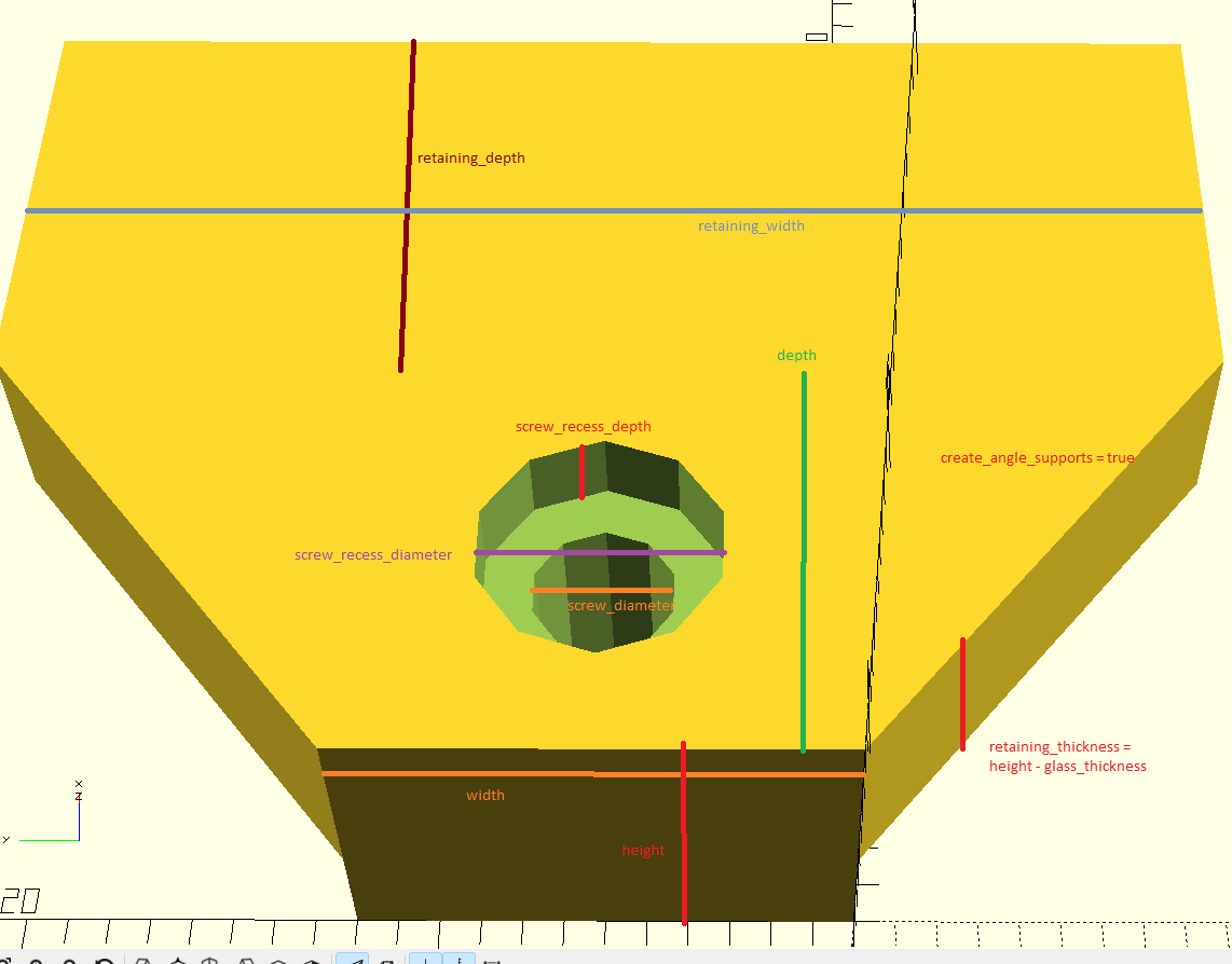 Tôi đã tạo ra mô hình này để tạo ra một số kẹp giữ tùy chỉnh với kích thước đặc biệt, được mô phỏng từ các kẹp giữ gương mua tại Lowes. Trường hợp sử dụng của tôi là để giữ các tấm acrylic 3mm được sơn theo phong cách kính màu giả vào cửa sổ phía trước của chúng tôi. Các kẹp gương có sẵn thì quá xa tường và không có đủ hỗ trợ rộng để giữ các mối nối giữa các tấm được chắc chắn.