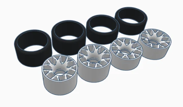 Mình tách riêng phần mâm và lốp khỏi model để in nhanh hơn và dễ hơn. Nhưng lốp chỉ fit lên mâm nếu in bằng TPU.