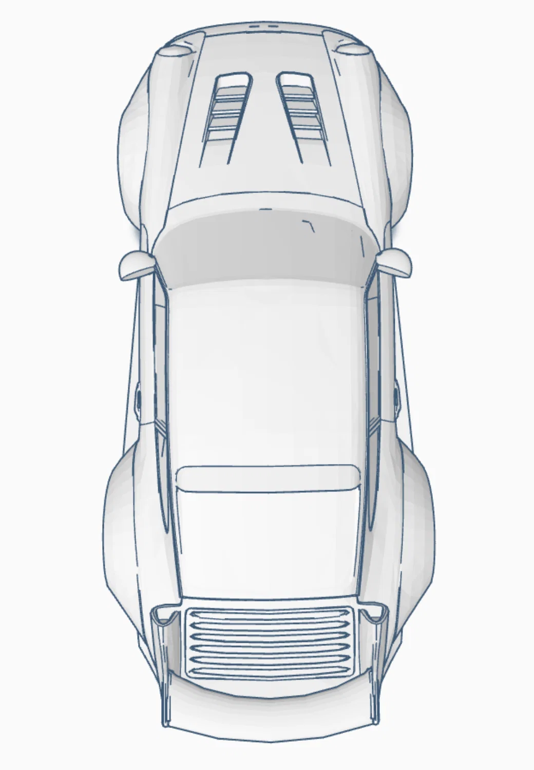 Mẫu Porsche 911 phong cách RWB bản Update Neue Version. Tác giả tự chỉnh sửa toàn bộ model và tự thiết kế mâm. In tỉ lệ 1:43 (layer 0,15; infill 7%) bằng Geetech PLA trắng; mâm/lốp tách riêng, lốp cần TPU.